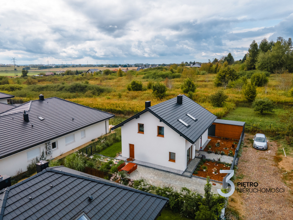 Budynek ocieplony został styropianem o grubości 20 cm, dach pokryty blachodachówką, a trzyszybowe okna zapewniają komfort i energooszczędność - w salonie zastosowano nowoczesny system przesuwny z wyjściem na taras. Działka o powierzchni 450 m² jest w pełni ogrodzona i zagospodarowana, z podjazdem wyłożonym kostką brukową oraz możliwością wykonania dodatkowego zadaszenia.