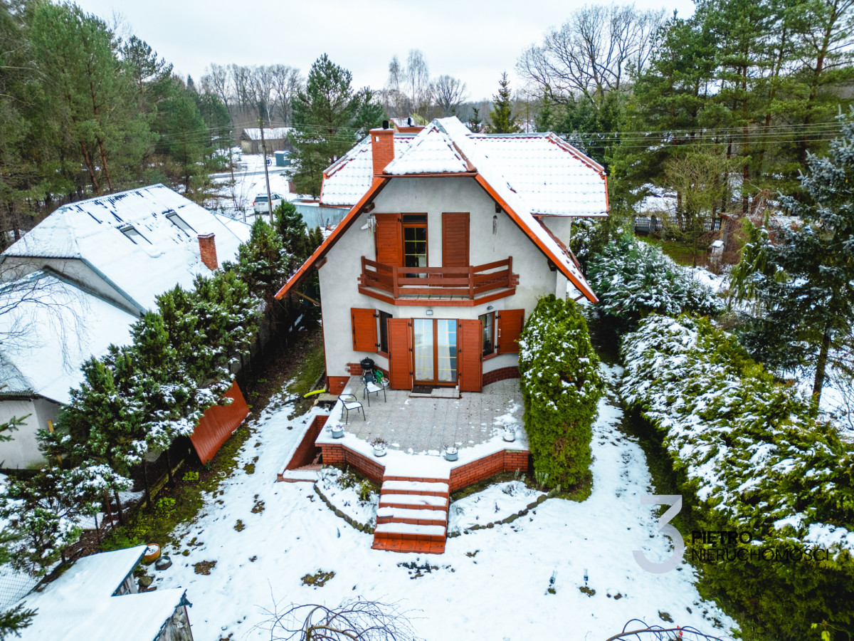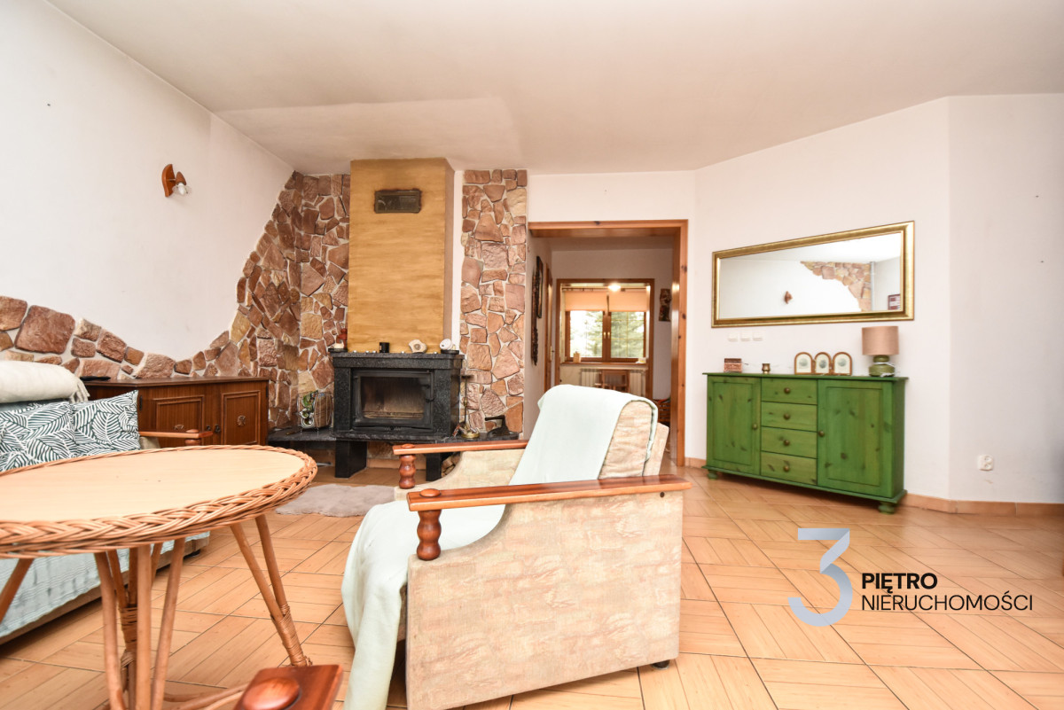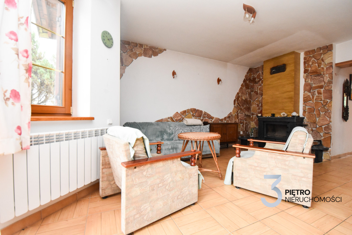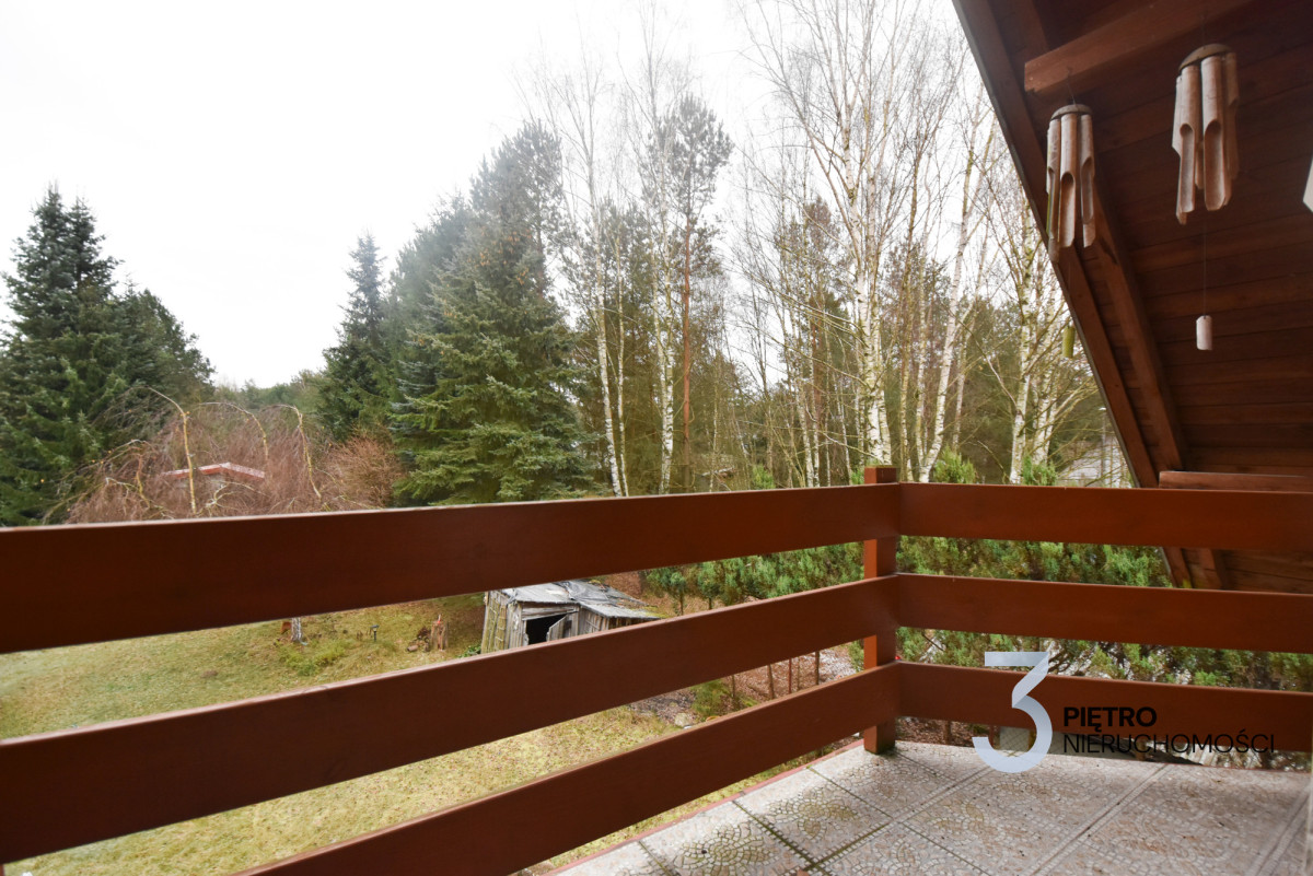 DOM Urokliwy dom wolnostojący o powierzchni użytkowej 120 m² wybudowany w 2014 roku. Budynek jak i ciepła woda ogrzewane są z nowego pieca na pellet. Dodatkowym źródłem ciepła jest kominek z rozprowadzeniem ciepła na piętro budynku, oraz ogrzewający parter dzięki otwartej przestrzeni. W kuchni znajduje się również piec kaflowy wykonany na zamówienie. Budynek częściowo podpiwniczony (głównie w części kuchennej) oraz pod tarasem. Ściany zewnętrzne zbudowane w systemie pustak - styropian - pustak, dzięki czemu łatwo utrzymać we wnętrzu wysoką temperaturę zimą, a niską latem. Dach ocieplony wełną, pokryty blachodachówką. Działka na której znajduje się dom ma powierzchnię 6600 m² i jest częściowo ogrodzona. Za ogrodzeniem znajduje się jeszcze długi pas lasu. Na ogrodzie znajduje się budynek gospodarczy z doprowadzonym prądem o powierzchni 20 m². Woda do domu doprowadzona jest z miejskich wodociągów, jednak istnieje możliwość pogłębienia istniejącej już studni i podłączenia się do niej. Na posesji zbudowana jest ekologiczna oczyszczalnia ścieków. Budynek do wykończenia według własnego gustu i uznania.