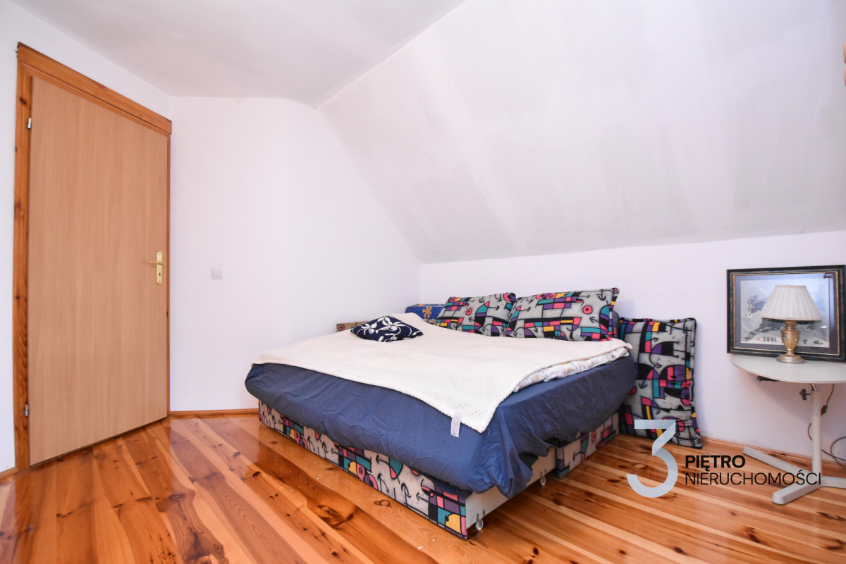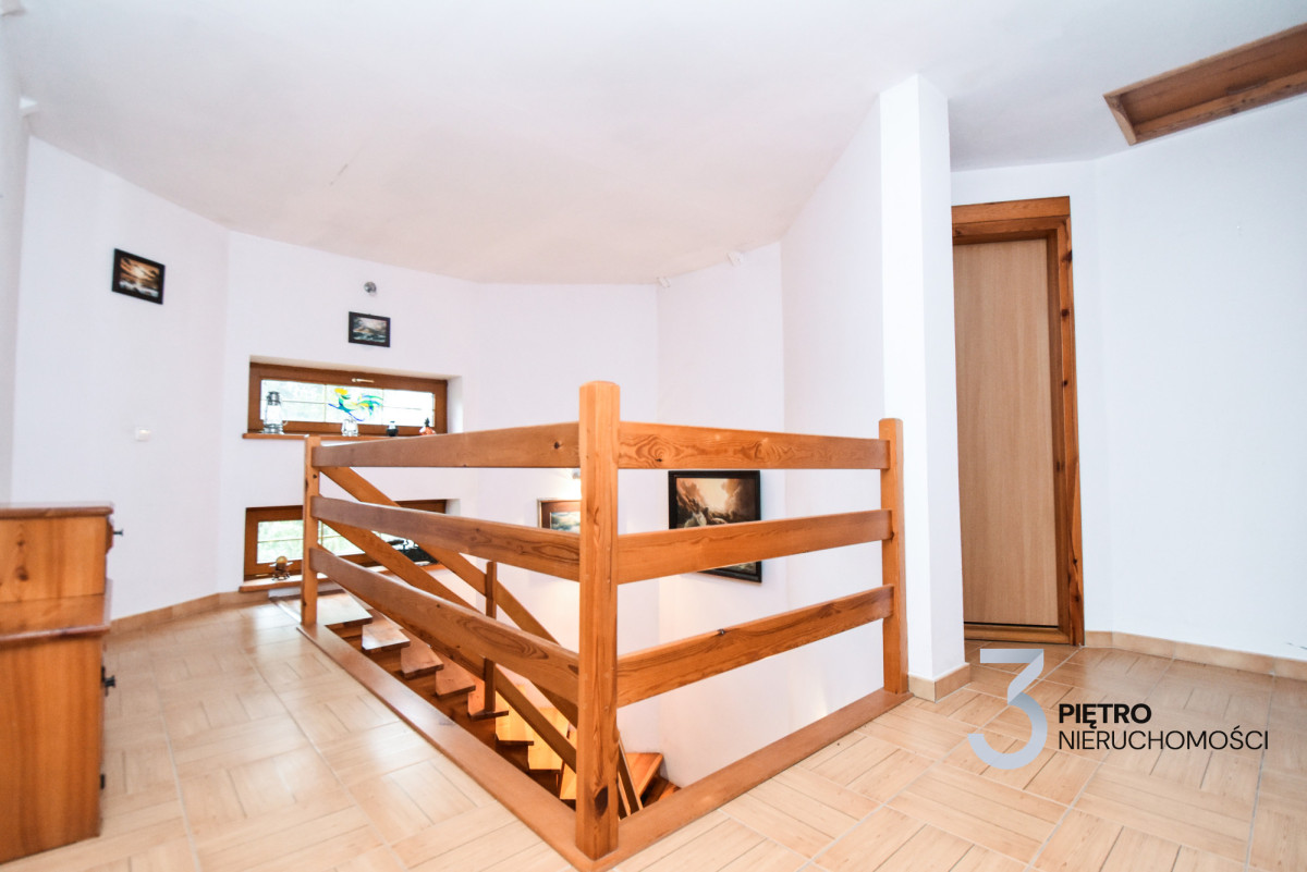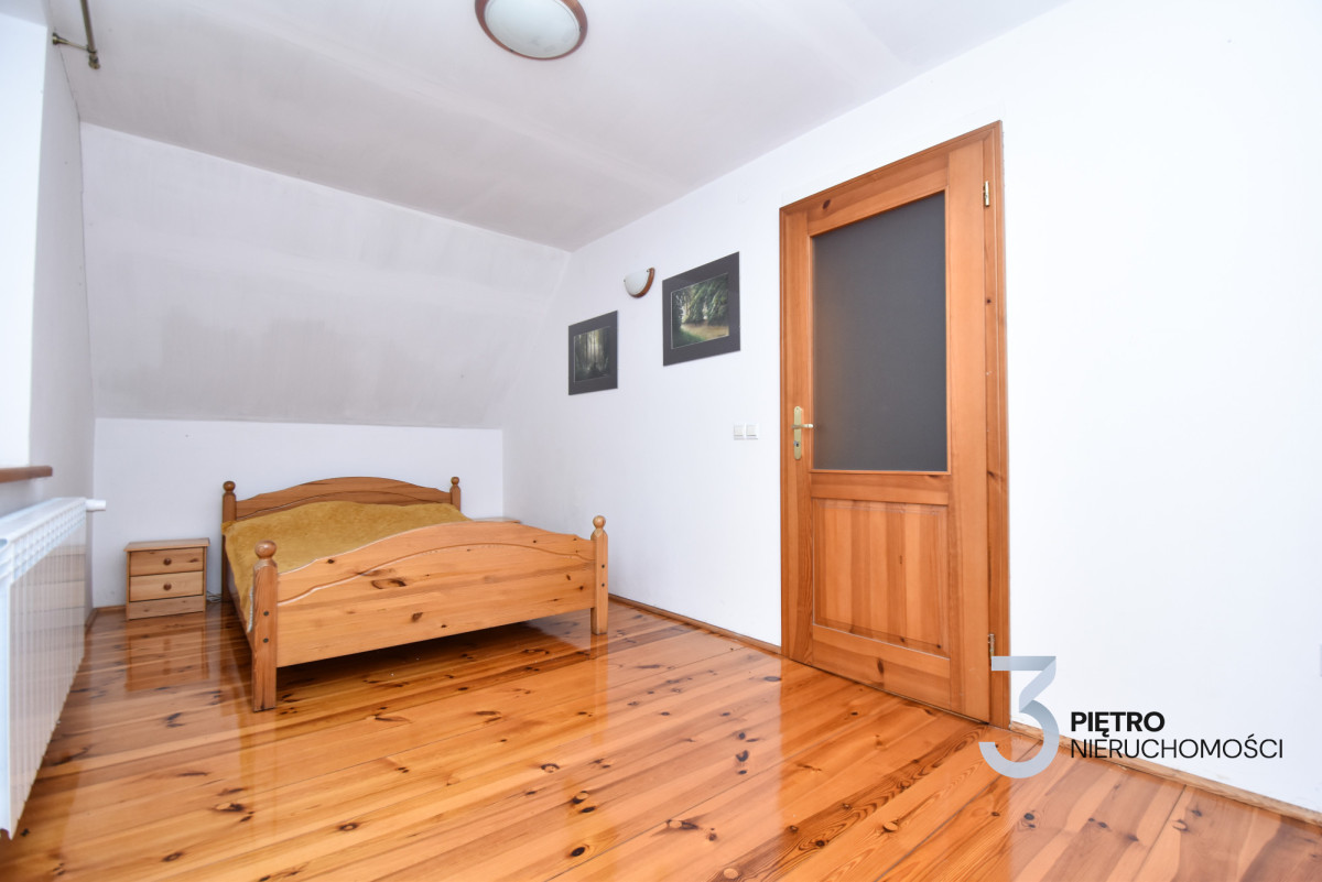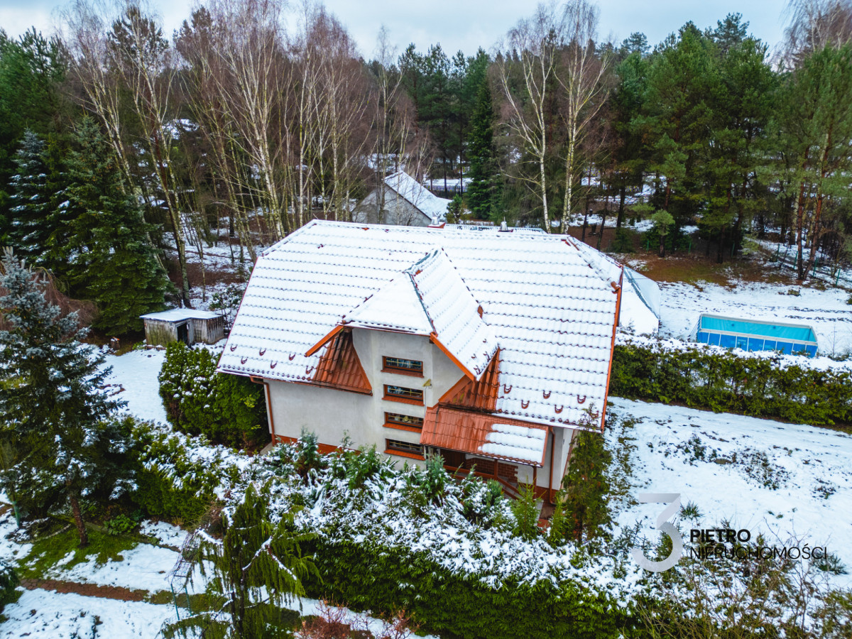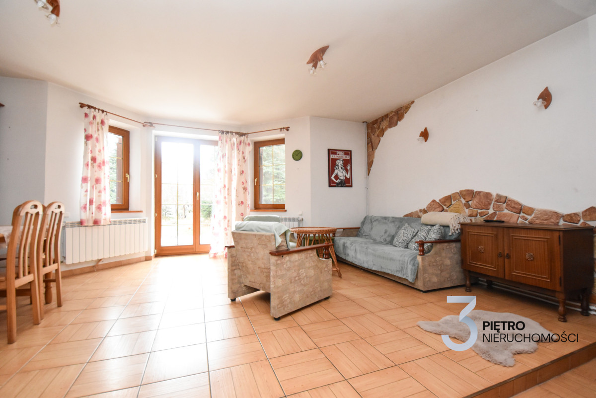 DOM Urokliwy dom wolnostojący o powierzchni użytkowej 120 m² wybudowany w 2014 roku. Budynek jak i ciepła woda ogrzewane są z nowego pieca na pellet. Dodatkowym źródłem ciepła jest kominek z rozprowadzeniem ciepła na piętro budynku, oraz ogrzewający parter dzięki otwartej przestrzeni. W kuchni znajduje się również piec kaflowy wykonany na zamówienie. Budynek częściowo podpiwniczony (głównie w części kuchennej) oraz pod tarasem. Ściany zewnętrzne zbudowane w systemie pustak - styropian - pustak, dzięki czemu łatwo utrzymać we wnętrzu wysoką temperaturę zimą, a niską latem. Dach ocieplony wełną, pokryty blachodachówką. Działka na której znajduje się dom ma powierzchnię 6600 m² i jest częściowo ogrodzona. Za ogrodzeniem znajduje się jeszcze długi pas lasu. Na ogrodzie znajduje się budynek gospodarczy z doprowadzonym prądem o powierzchni 20 m². Woda do domu doprowadzona jest z miejskich wodociągów, jednak istnieje możliwość pogłębienia istniejącej już studni i podłączenia się do niej. Na posesji zbudowana jest ekologiczna oczyszczalnia ścieków. Budynek do wykończenia według własnego gustu i uznania.