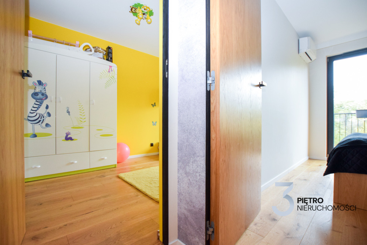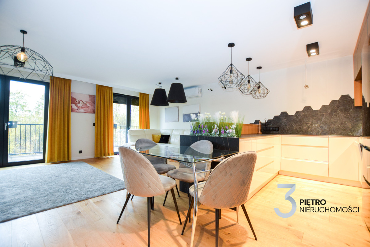 Elegancki, słoneczny apartament zlokalizowany na drugim piętrze kameralnego budynku z 2020 roku, otoczonego terenami zielonymi. Wnętrze zostało zaprojektowane przez architekta i wykończone z najwyższej jakości materiałów, z dbałością o każdy detal. Na podłogach położono dębowe deski, które nadają przestrzeni ciepła i elegancji. Wszystkie meble wykonano na wymiar z fornirowanego i lakierowanego drewna. W apartamencie zastosowano fornirowane drzwi wewnętrzne z ukrytymi ościeżnicami, co dodatkowo podkreśla jego prestiżowy charakter. Mieszkanie wyposażone jest w klimatyzację w każdym pomieszczeniu, miejskie ogrzewanie podłogowe, mechaniczną wentylację oraz okna wychodzące na tereny zielone, zapewniające ciszę i spokój.