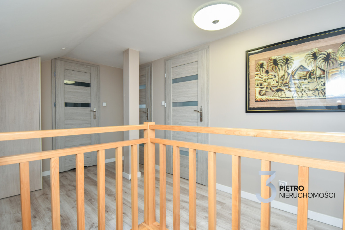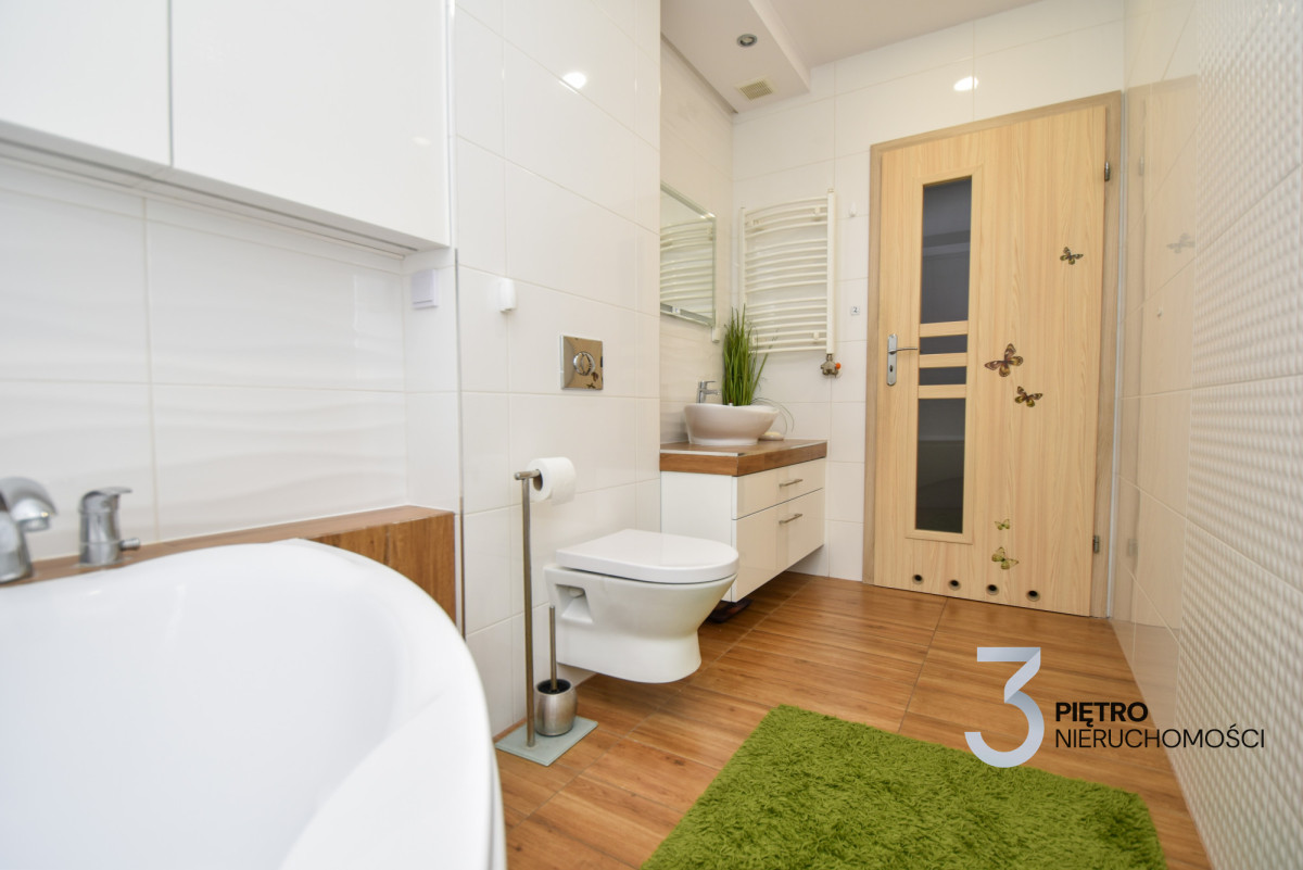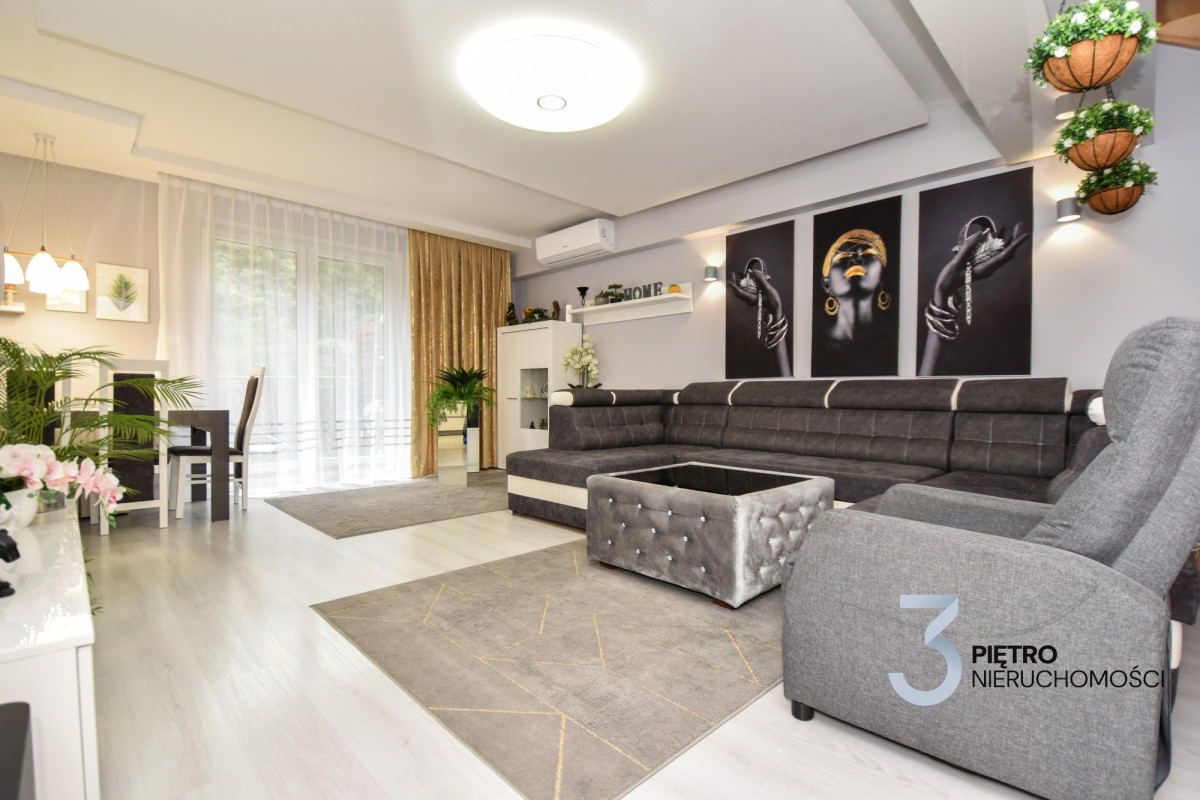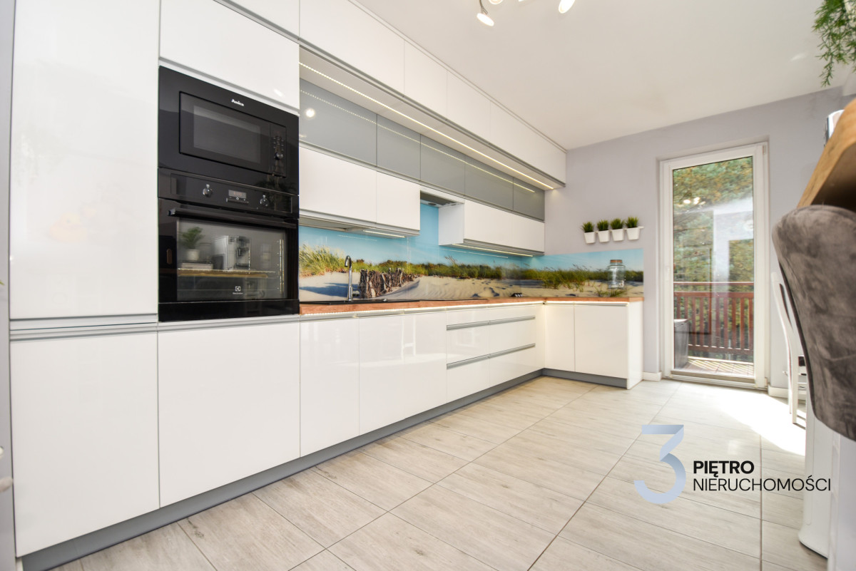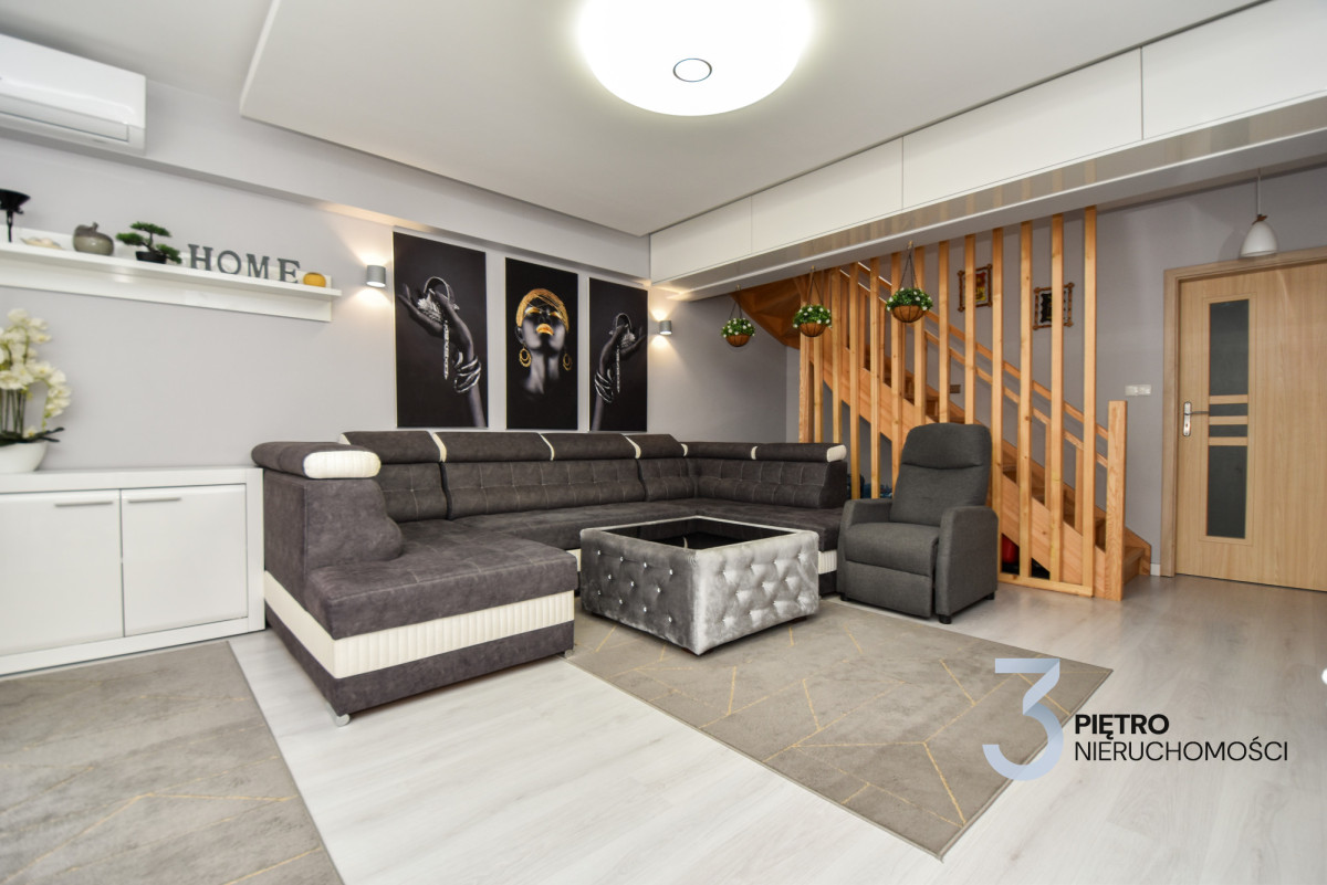 Na sprzedaż wyjątkowe mieszkanie w zabudowie szeregowej o łącznej powierzchni 120 m², wykończone w najwyższym standardzie i gotowe do wprowadzenia. Mieszkanie jest środkowe, na parterze znajduje się 78 m² przestrzeni dziennej, a dodatkowe 42 m² poddasza daje wiele możliwości aranżacyjnych. Mieszkanie zostało urządzone z wykorzystaniem materiałów premium, jest klimatyzowane, częściowo wyposażone w ogrzewanie podłogowe, a dodatkowo posiada nowoczesne ogrzewanie gazowe z pieca dwufunkcyjnego. Zainstalowany światłowód zapewnia szybki internet, a całość sprzedawana jest wraz z pełnym wyposażeniem i umeblowaniem.