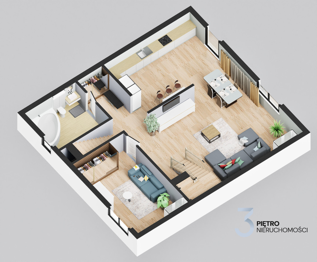 • Salon połączony z aneksem kuchennym