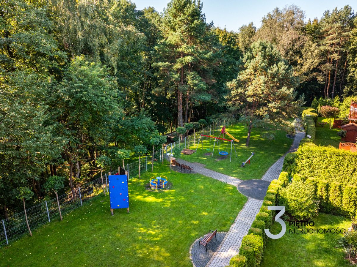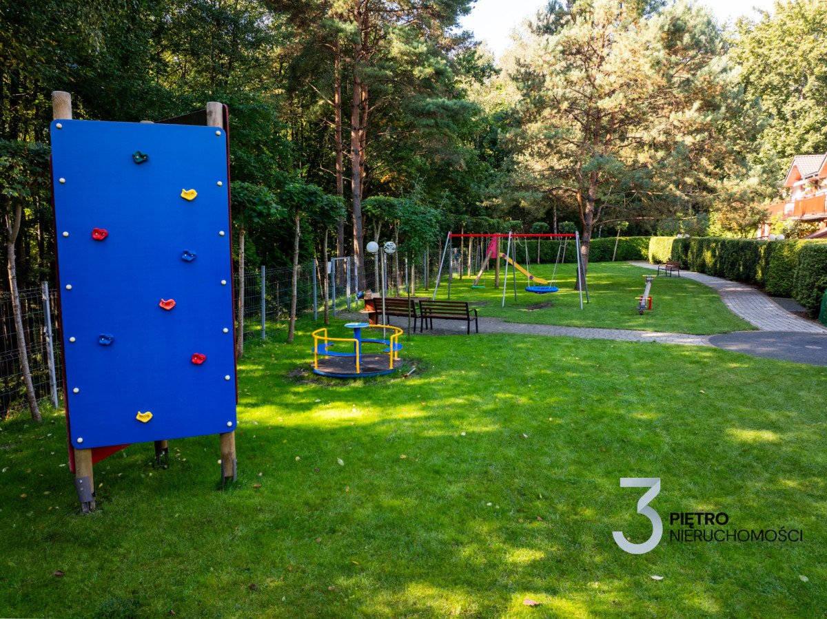Cała inwestycja jest ogrodzona, monitorowana i gwarantuje wysoki poziom bezpieczeństwa. Do dyspozycji mieszkańców pozostaje plac zabaw, a także prywatny las z altaną i miejscem na grilla, dostępny wyłącznie dla mieszkańców osiedla. Komfort codziennego życia zwiększają rolety wewnętrzne oraz wideofon.