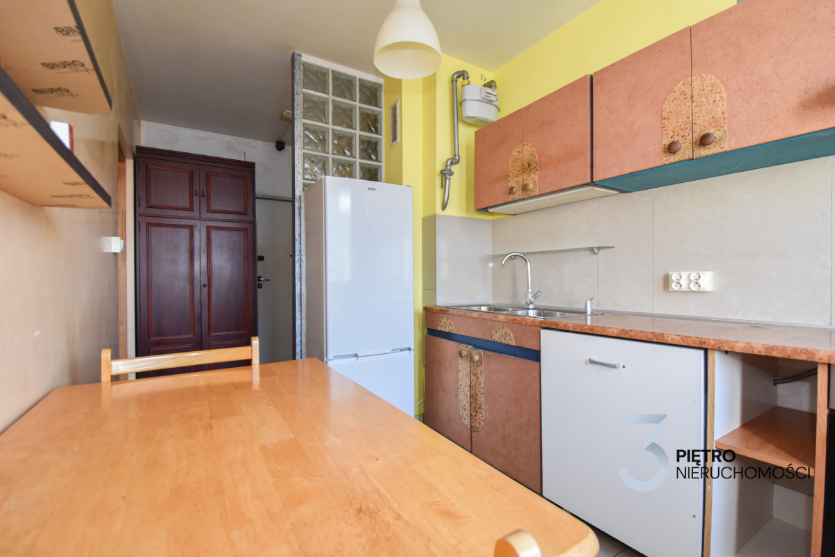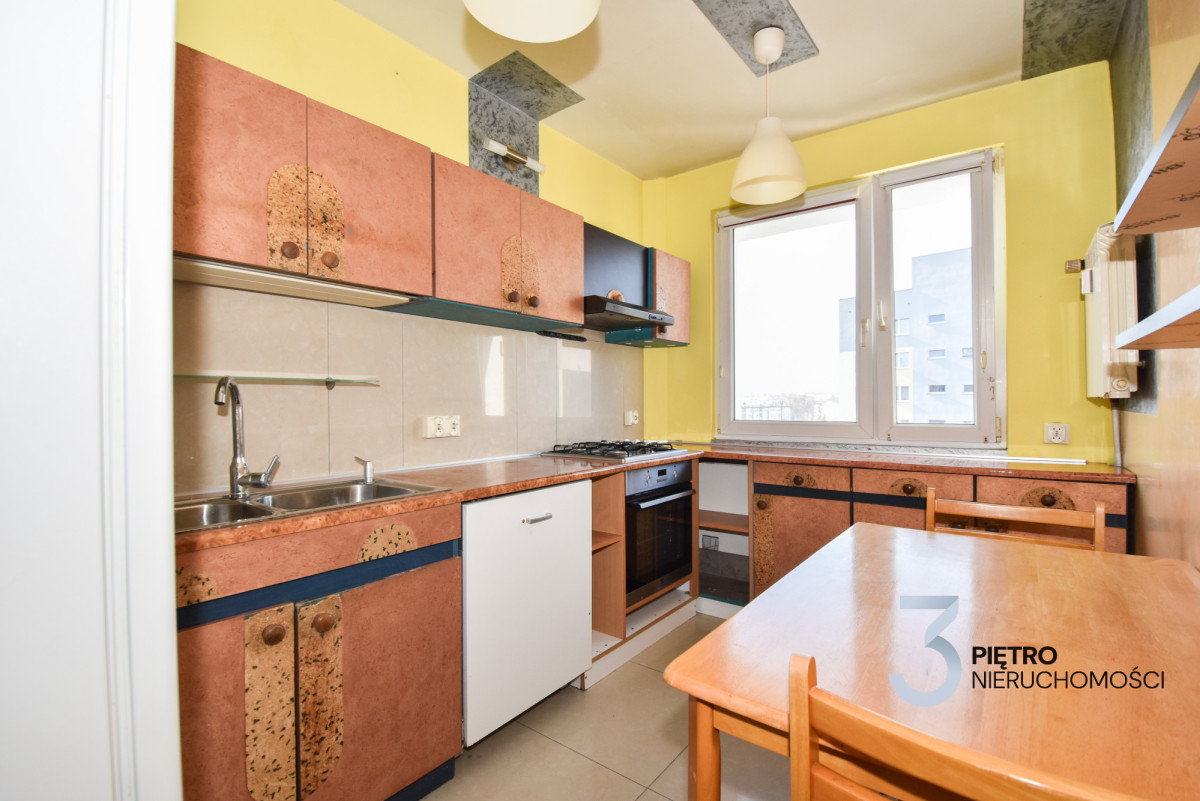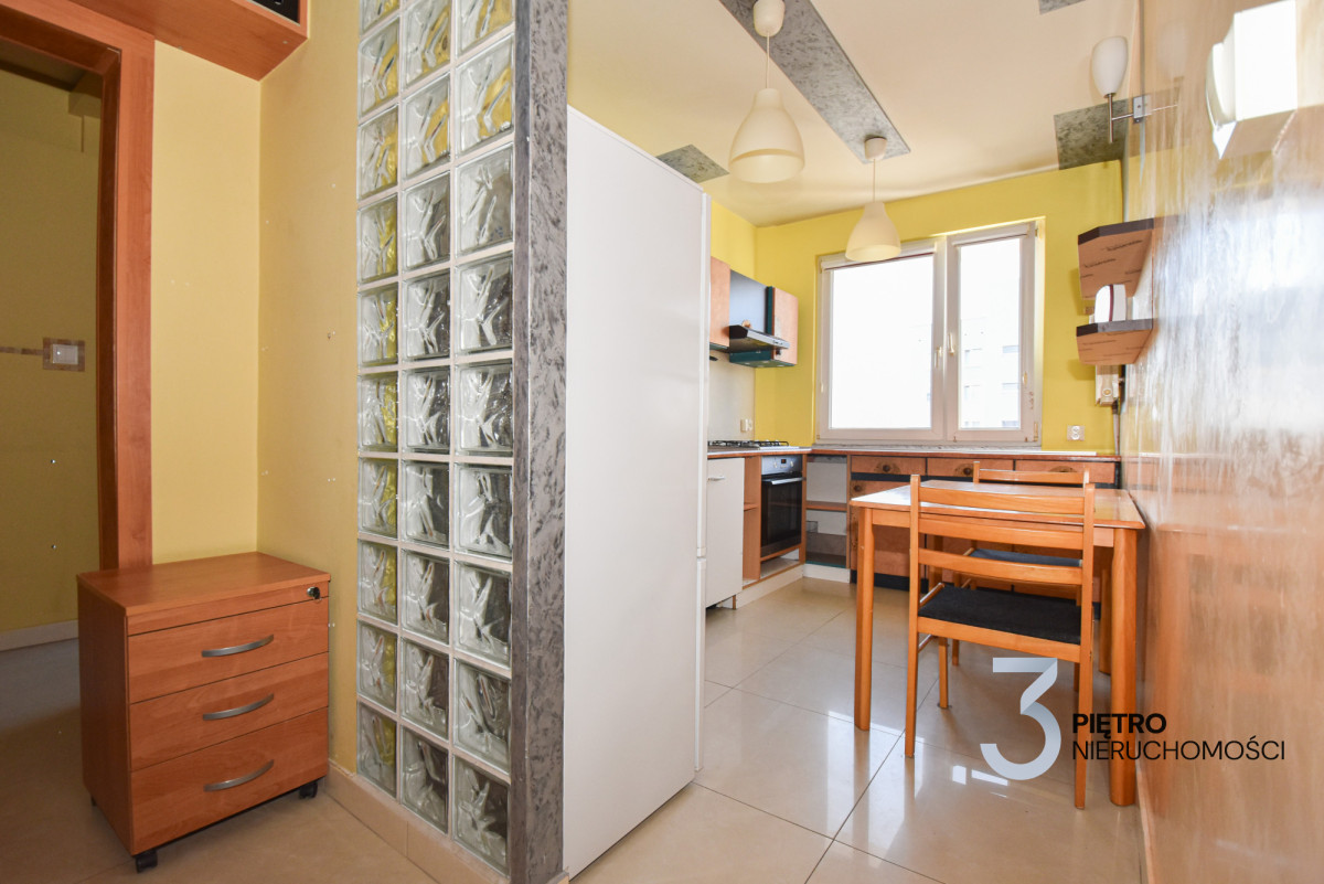MIESZKANIE Słoneczne mieszkanie o powierzchni 44,7 m² na 9. piętrze w 10-piętrowym bloku po termomodernizacji. Lokal ma funkcjonalny układ: przestronny salon z wyjściem na balkon, drugi pokój (sypialnia lub pokój dziecięcy), oddzielną kuchnię, łazienkę z WC oraz przedpokój. Okna wychodzą na południe, dzięki czemu mieszkanie jest dobrze doświetlone. Do lokalu przynależy balkon i piwnica, a przed budynkiem dostępne są liczne miejsca parkingowe.