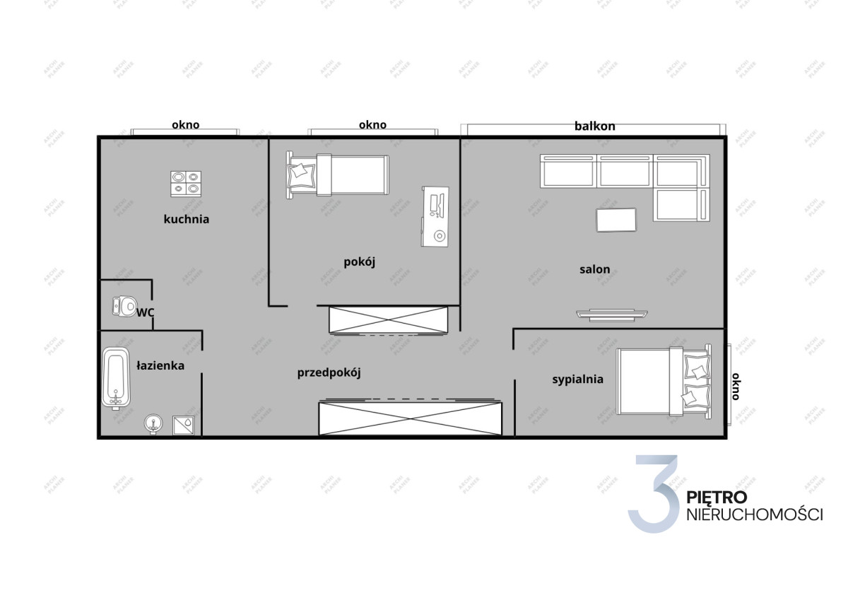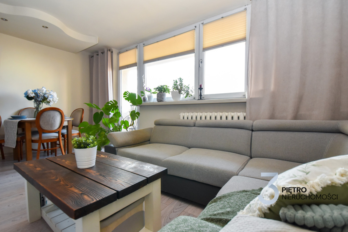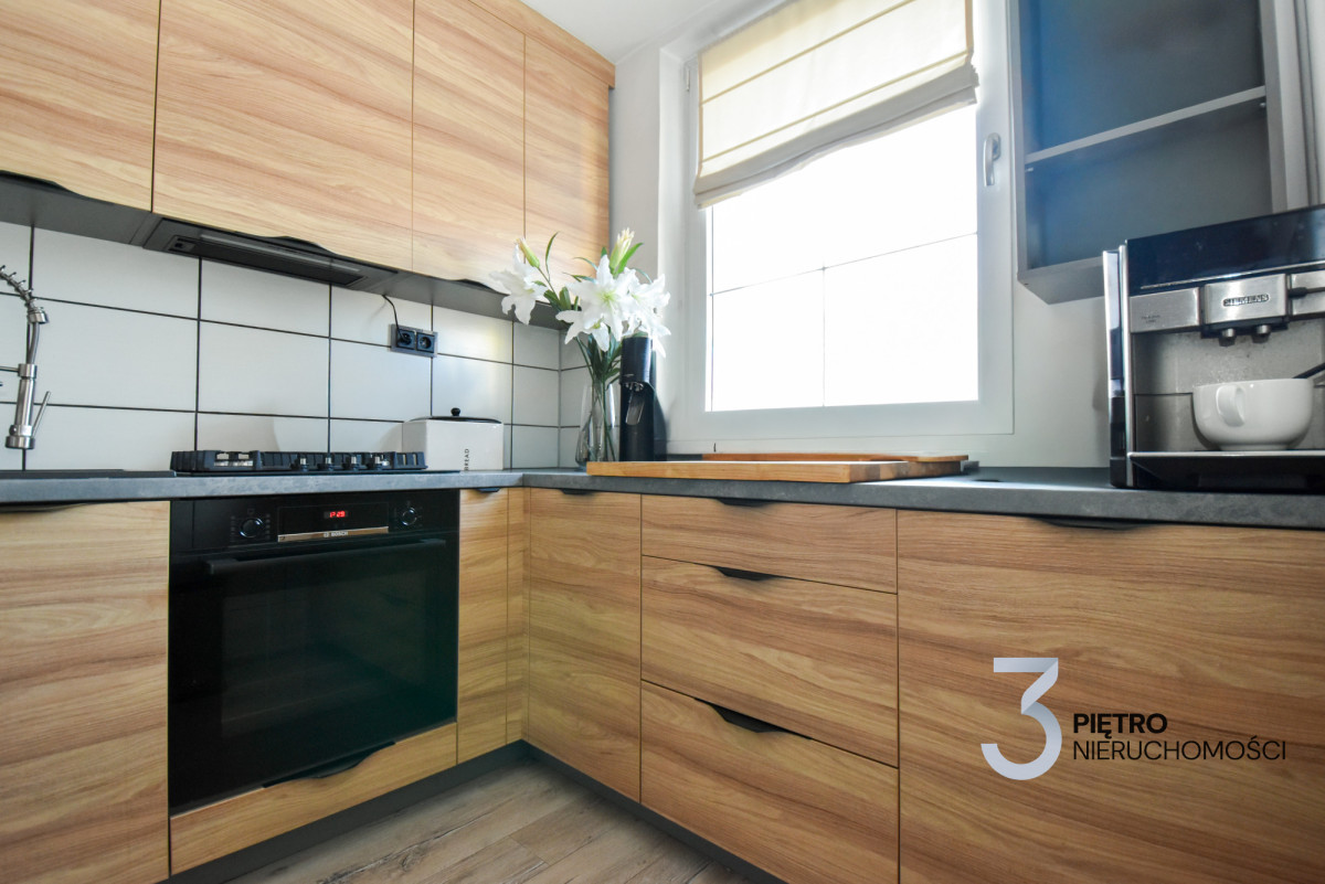 MIESZKANIEPrzestronne i słoneczne trzypokojowe mieszkanie usytuowane na 2 piętrze w 10-piętrowym bloku bo termomodernizacji. Blok wyposażony w 3 windy oraz monitoring. Mieszkanie sprzedawane jest z pełnym umeblowanie, wyposażone w szafy na wymiar, solidnej jakości meble, a dodatkowo w cenie pozostają pralka oraz suszarka. Kuchnia w pełni wyposażona i gotowa do użytkowania