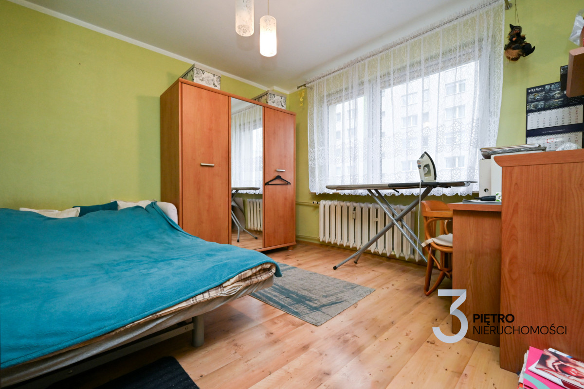 MIESZKANIE Dwupokojowe mieszkanie położone na czwartym piętrze w dziesięciopiętrowym budynku. Czysta, zadbana klatka schodowa, blok po termomodernizacji. Mieszkanie do odświeżenia, częściowo umeblowane i wyposażone. Duża ilość miejsca parkingowego przed budynkiem. W mieszkaniu zostały wymienione piony wodnokanalizacyjne, instalacja miedziana. Do lokalu przynależy balkon oraz piwnica.