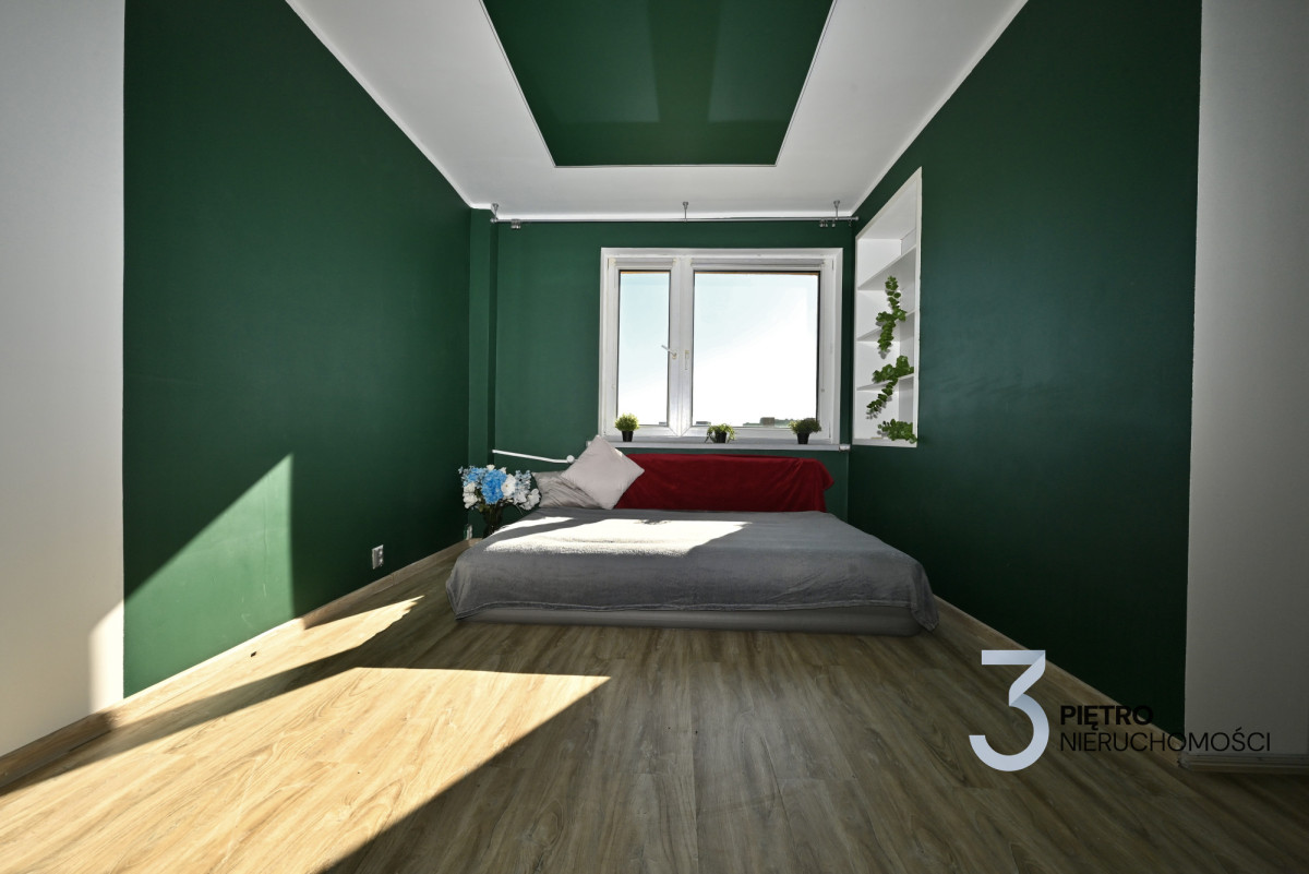 MIESZKANIE Dwustronne, trzypokojowe mieszkanie położone na czwartym piętrze w wysokim bloku wyposażonym w windę. Czysta, zadbana klatka schodowa, zielona okolica. Mieszkanie do odświeżenia, bardzo słoneczne. Wyposażone w pojemne szafy w zabudowie. Dużo wolnych miejsc parkingowych. Istnieje możliwość wykonania balkonu z pokoju.