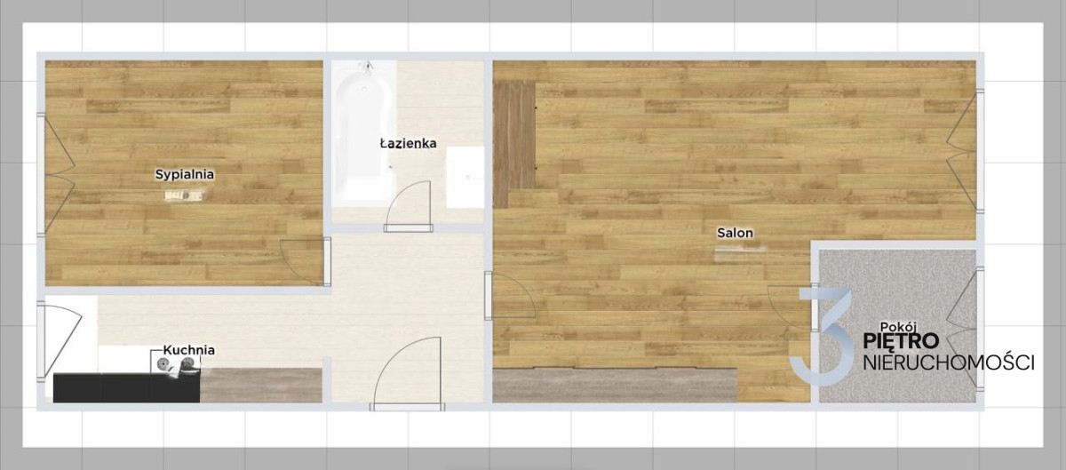 UKŁAD POMIESZCZEŃ Łączna powierzchnia: 56 m2 • Łazienka z WC • Przedpokój • Sypialnia • Kuchnia • Salon • Pokój