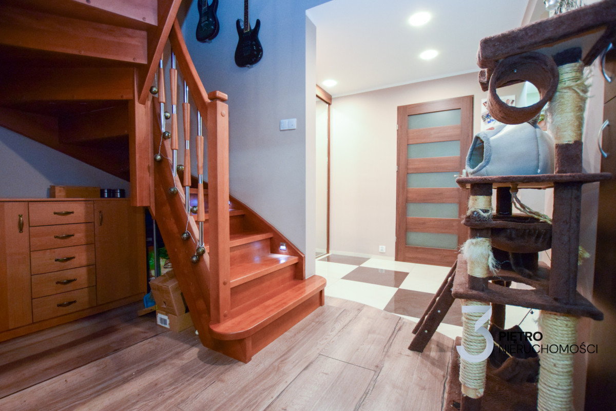 MIESZKANIE Dwustronne, przestronne dwupoziomowe mieszkania położone na drugim piętrze w trzypiętrowym bloku. Klatka schodowa zadbana, wejście zabezpieczone domofonem. Mieszkanie jest dwustronne, z ekspozycją północ-południe, dzięki czemu jest doskonale doświetlone przez cały dzień.