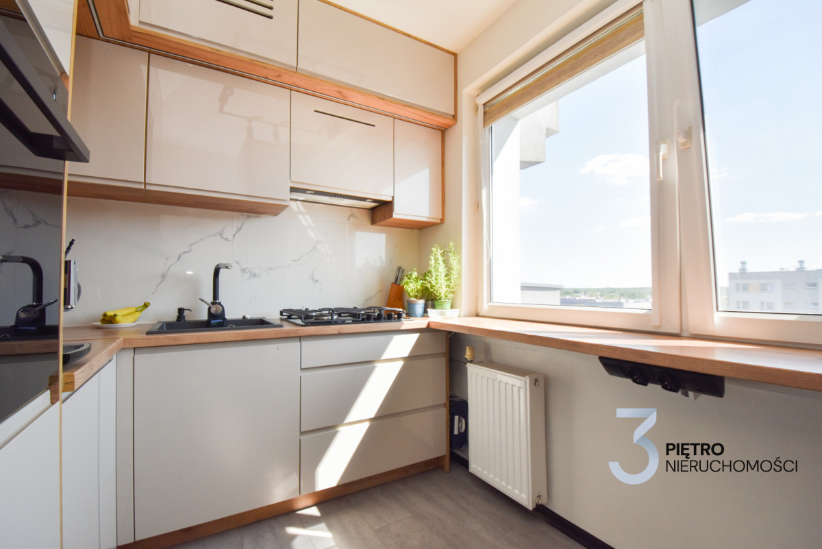 MIESZKANIE Dwupokojowe mieszkanie o funkcjonalnym układzie, położone na siódmym piętrze dziesięciopiętrowego bloku po termomodernizacji. Budynek oraz otoczenie są zadbane i dobrze utrzymane. W 2024 roku lokal przeszedł generalny remont, w ramach którego wymieniono instalację elektryczną oraz piony wodno-kanalizacyjne. Kuchnia została wyposażona w nową zabudowę wraz ze sprzętami AGD objętymi gwarancją. Wykończenie mieszkania wykonano z użyciem solidnych materiałów i z dbałością o szczegóły. Ogrzewanie i ciepła woda pochodzą z sieci miejskiej. W cenie pozostaje widoczne na zdjęciach wyposażenie, z wyłączeniem sprzętu RTV. Do mieszkania przynależy przestronny balkon oraz piwnica.