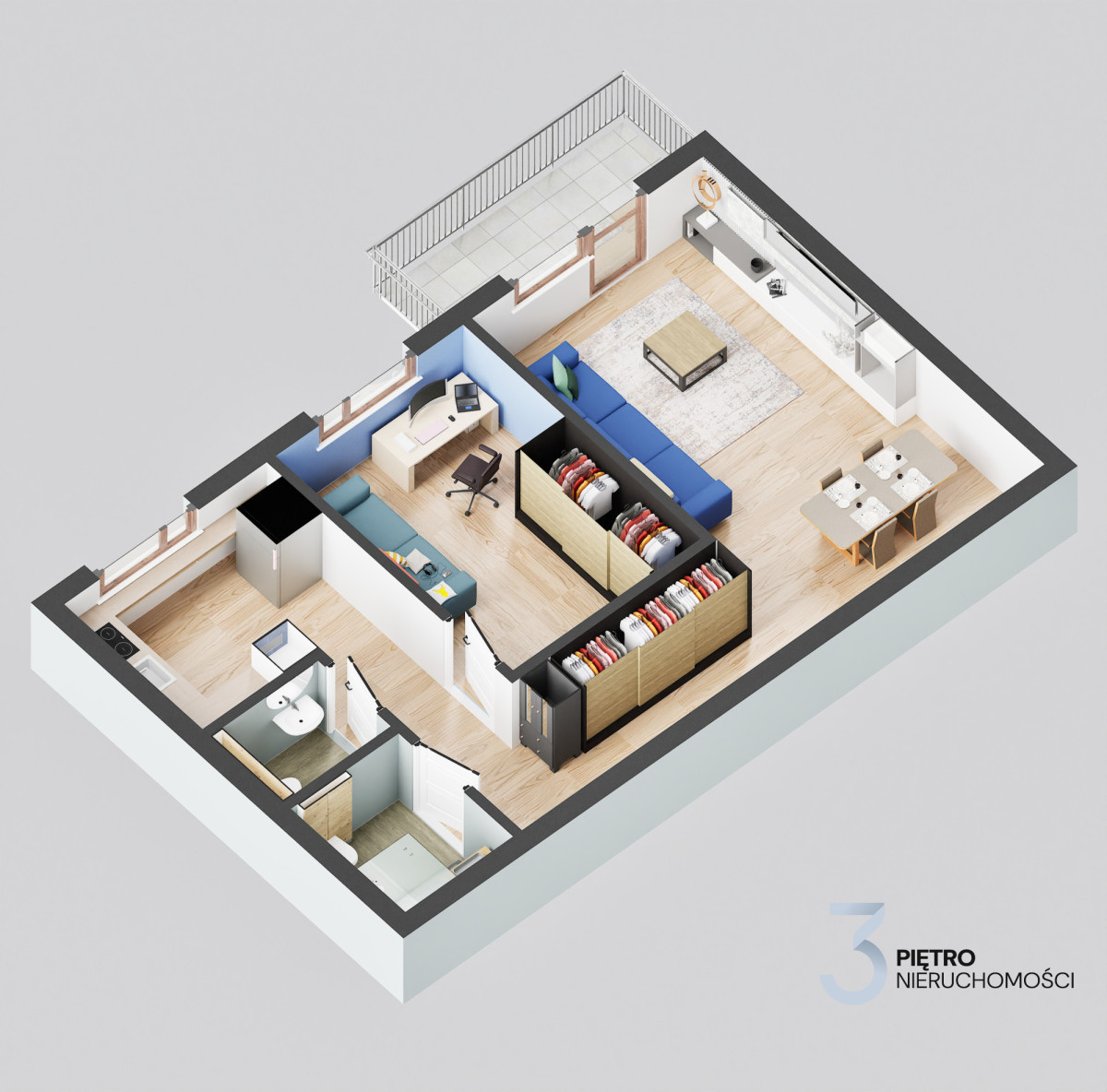 UKŁAD POMIESZCZEŃ Powierzchnia mieszkania: 50,00 m2 • Przestronny salon z wyjściem na balkon • Oddzielna kuchnia • Pokój dziecięcy • Przedpokój • Łazienka • WC