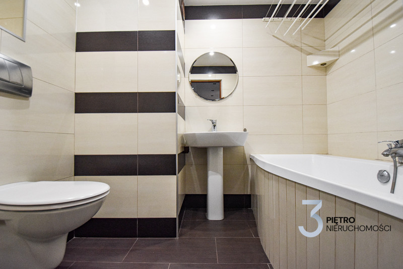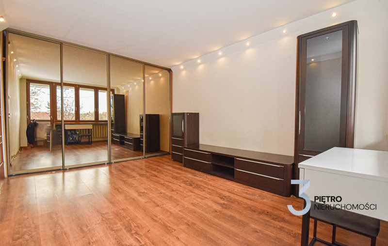 Mieszkanie jest częściowo umeblowane i w bardzo dobrym stanie technicznym - kilka lat temu przeszło remont, a ostatnio zostało odświeżone. W skład lokalu wchodzi przestronny, jasny salon z zabudowaną szafą i wyjściem na balkon, duża, widna kuchnia z meblami oraz sprzętem AGD (lodówka, kuchenka, piekarnik, zmywarka), sypialnia, łazienka z wanną i WC.