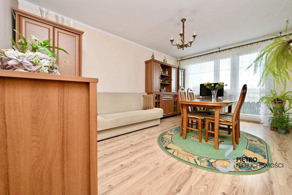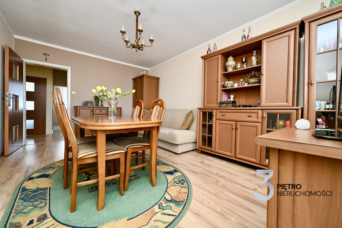 MIESZKANIE Trzypokojowe mieszkanie, położone na 5 piętrze w wysokim bloku z windą. Termomodernizacja bloku planowana jest na rok 2026. Mieszkanie przestronne, zadbane, do odświeżenia i urządzenia według własnego gustu! Czysta i zadbana klatka schodowa. Mieszkanie idealne dla rodziny, z bardzo praktycznym układem (północ i południe), do którego przynależy piwnica i duży balkon. W mieszkaniu ogrzewanie oraz ciepła woda z sieci miejskiej. Dużo miejsc parkingowych wokół budynku. W kuchni zabudowa kuchenna wraz ze sprzętami AGD.