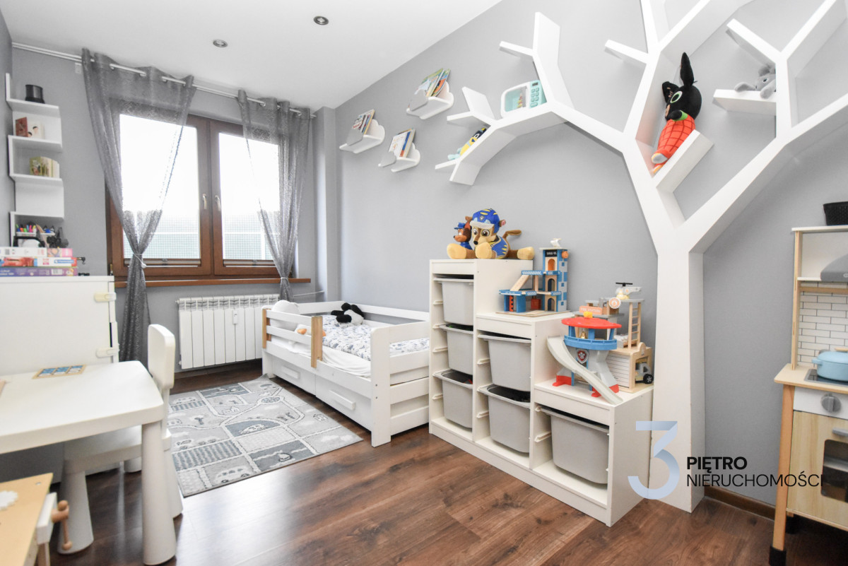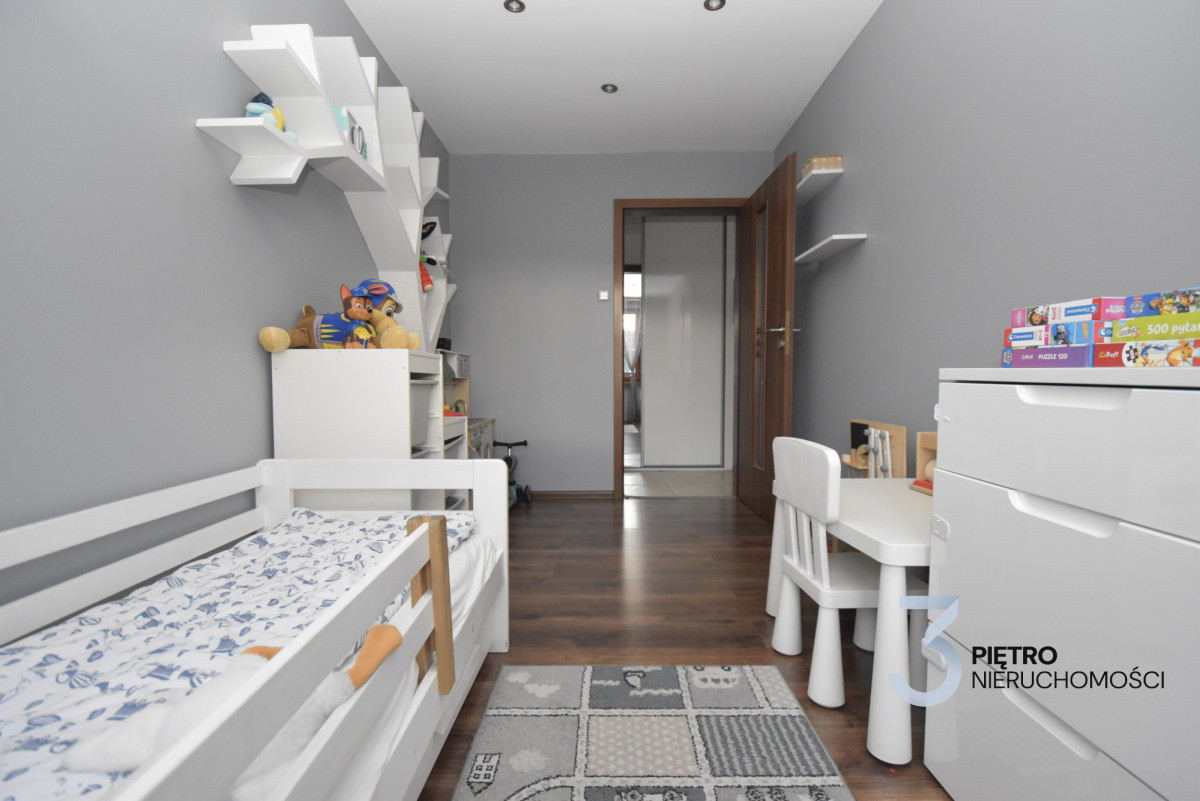 • Salon z wyjściem na balkon • Kuchnia z jadalnią • Pokój dziecięcy • WC