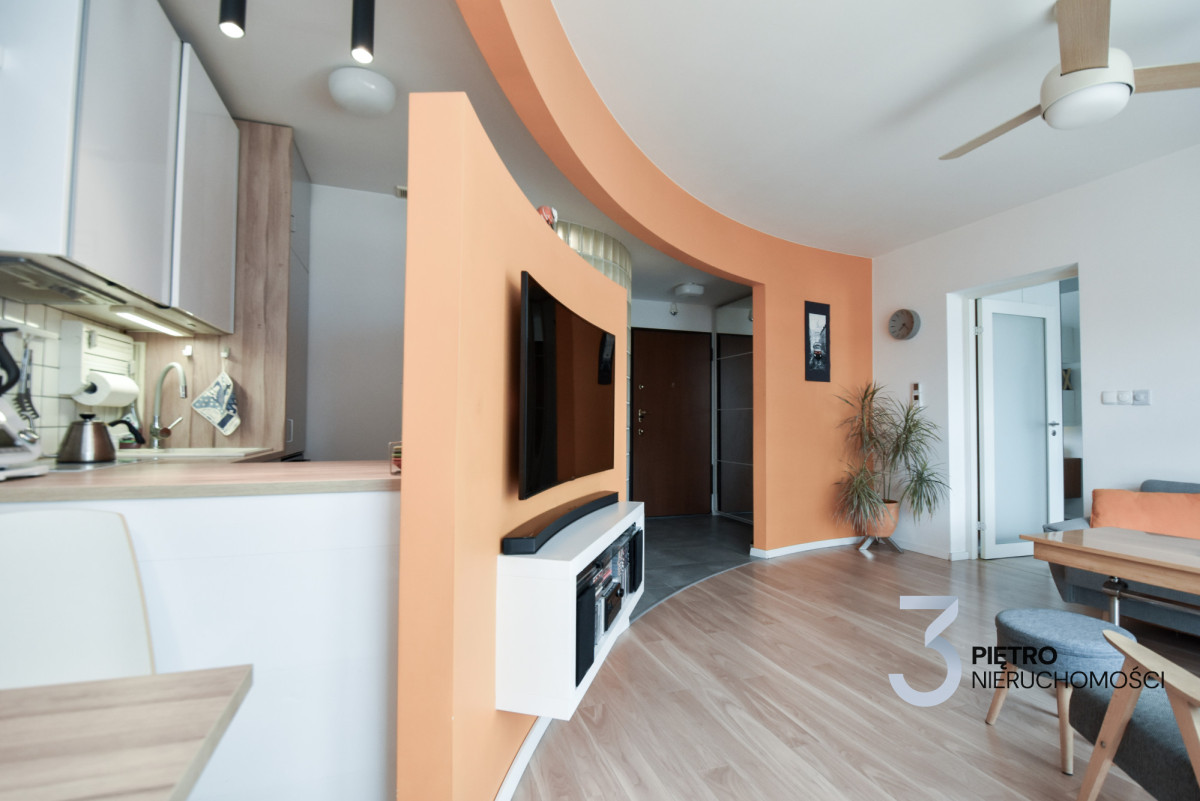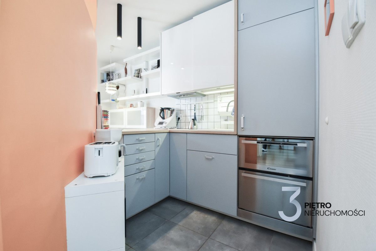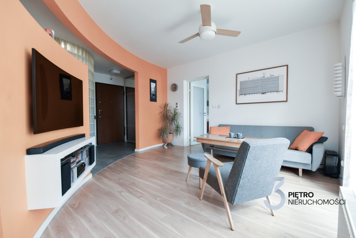Mieszkanie zaprojektowane i wykończone przez właściciela z dbałością o jakość i detale- południowa ekspozycja, duże okna, balkon, bardzo dobre doświetlenie przez cały rok, możliwość montażu klimatyzacji. Mieszkanie o funkcjonalnym układzie, z dużą ilością miejsca do przechowywania- łącznie 4 metry szafy w zabudowie.