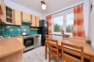 Czteropokojowe, dwustronne mieszkanie położone na trzecim piętrze w niskim bloku. Mieszkanie sprzedawane jest z umeblowaniem – do wejścia od zaraz! Czysta, wyremontowana i zadbana klatka schodowa, zielona okolica. Parking przed budynkiem.