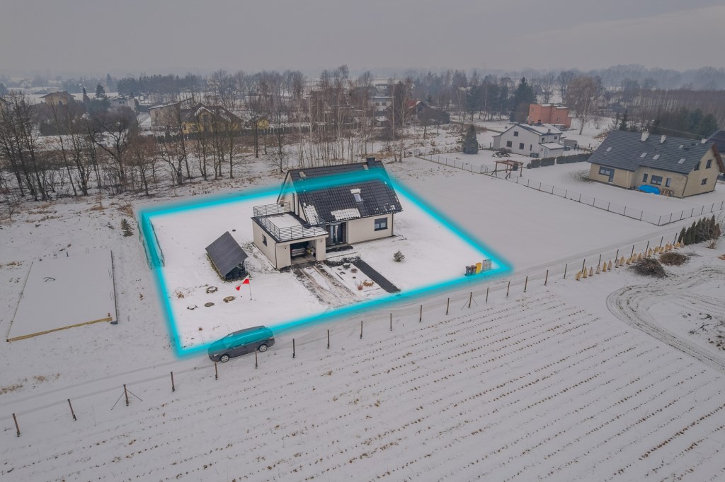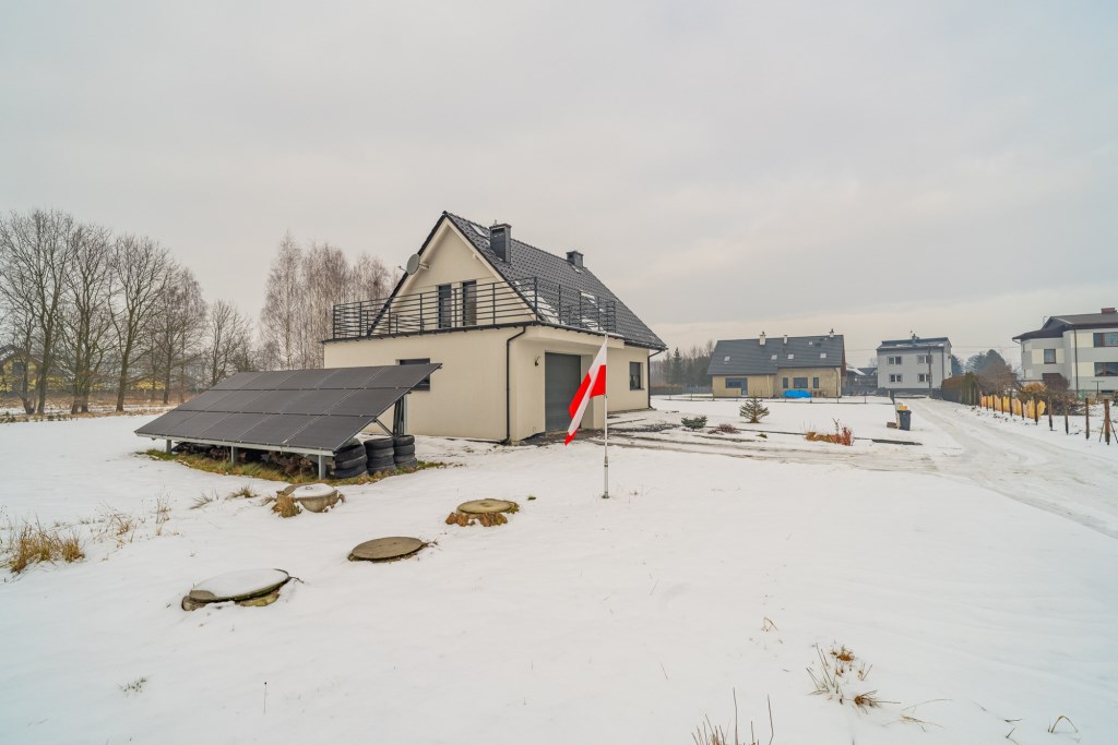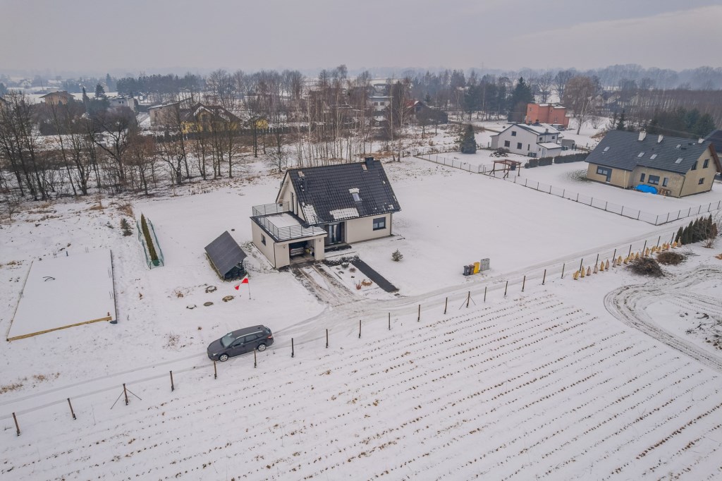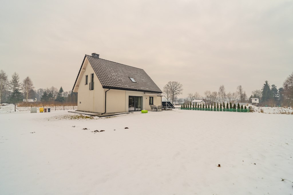 Nowoczesny dom wolnostojący o powierzchni użytkowej, która wynosi 101,41 m², natomiast powierzchnia usługowa obejmująca garaż i pomieszczenie gospodarcze 30,93 m². Powierzchnia netto budynku to 148,59 m², powierzchnia zabudowy 121,83 m², a kubatura 663,20 m³. Nieruchomość została wykończona i jest gotowa do zamieszkania bez konieczności wykonywania dodatkowych prac.