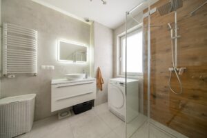 • Łazienka z wanną, prysznicem