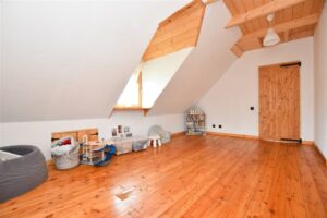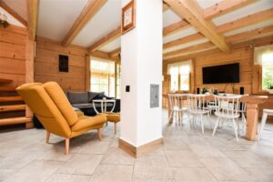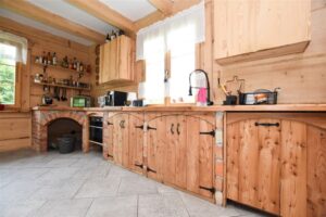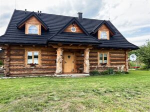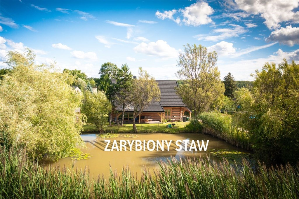 Piękny, przestronny dom wykonany z bali znajdujący się na działce o powierzchni 2050 m², na której znajduje się zarybiony staw, co czyni to miejsce wyjątkowo urokliwym. Budynek powstał w 2020 roku, a do jego wykonania użyte zostały najwyższej jakości materiały. Sprzedawany jest z całym wyposażeniem widocznym na zdjęciach. Ogrzewany z gruntowej pompy ciepła – parter w całości z ogrzewaniem podłogowym, w górnej części domu w każdym pomieszczeniu zamontowane są klimakonwektory.