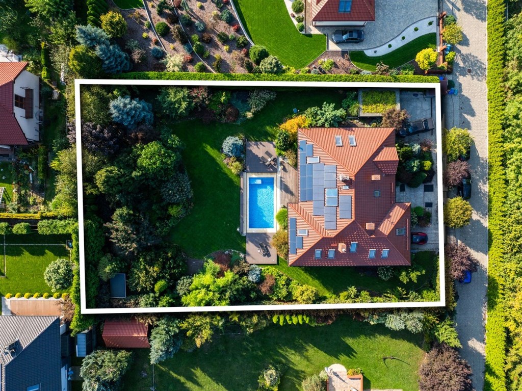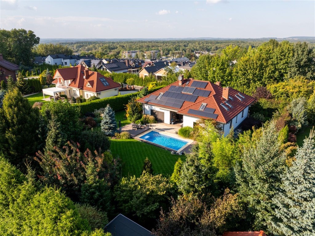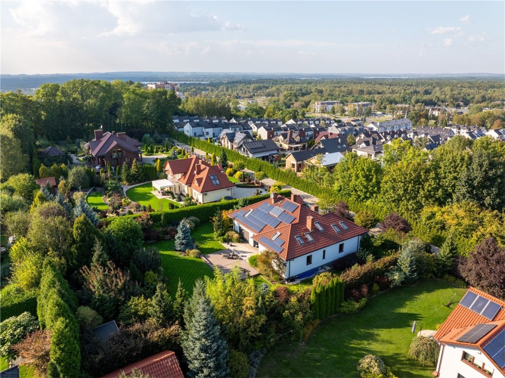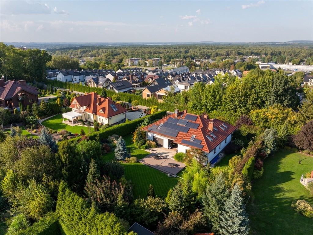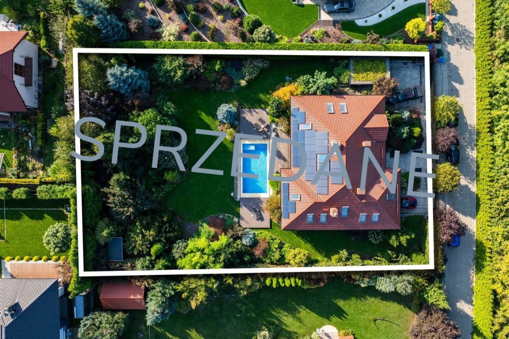 Trzykondygnacyjny, luksusowy dom o powierzchni 222,73 m² w zabudowie wolnostojącej z 2011 roku Wykończony w wysokim standardzie, z wykorzystaniem najlepszych materiałów dostępnych na rynku. Nieruchomość znajduje się na zamkniętym, luksusowym osiedlu wraz z 3 innymi domami, z udziałem w drodze dojazdowej. Na terenie posesji znajduje się basen podgrzewany pompą ciepła z zadaszeniem tarasowym sterowanym na pilota. Taras zewnętrzny jest ogrzewany z zamontowaną markizą elektryczną oraz zamykaniem z żaluzji drewnianych. Ogród urządzony w stylu japońskim z rozprowadzonym nawodnieniem i zraszaniem sterowanym przez aplikację. Podjazd oraz schody zewnętrzne są podgrzewane. W bryle budynku znajduje się jeden z garaży, drugi jest wolnostojący. Na dachu zamontowano panele fotowoltaiczne o mocy 10kWh. Dom ogrzewany jest piecem gazowym z możliwością sterowania przez aplikację. W części kuchennej rozprowadzono ogrzewanie podłogowe, w salonie nawiewy podłogowe, natomiast w pozostałej części domu zamontowano grzejniki. Budynek klimatyzowany – zamontowane są 4 jednostki klimatyzacji. W piwnicy znajdują się 2 sauny – sucha oraz parowa.