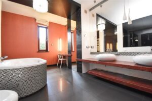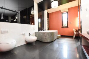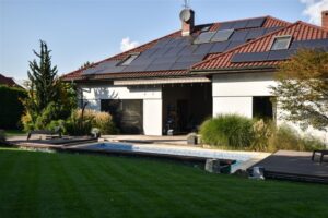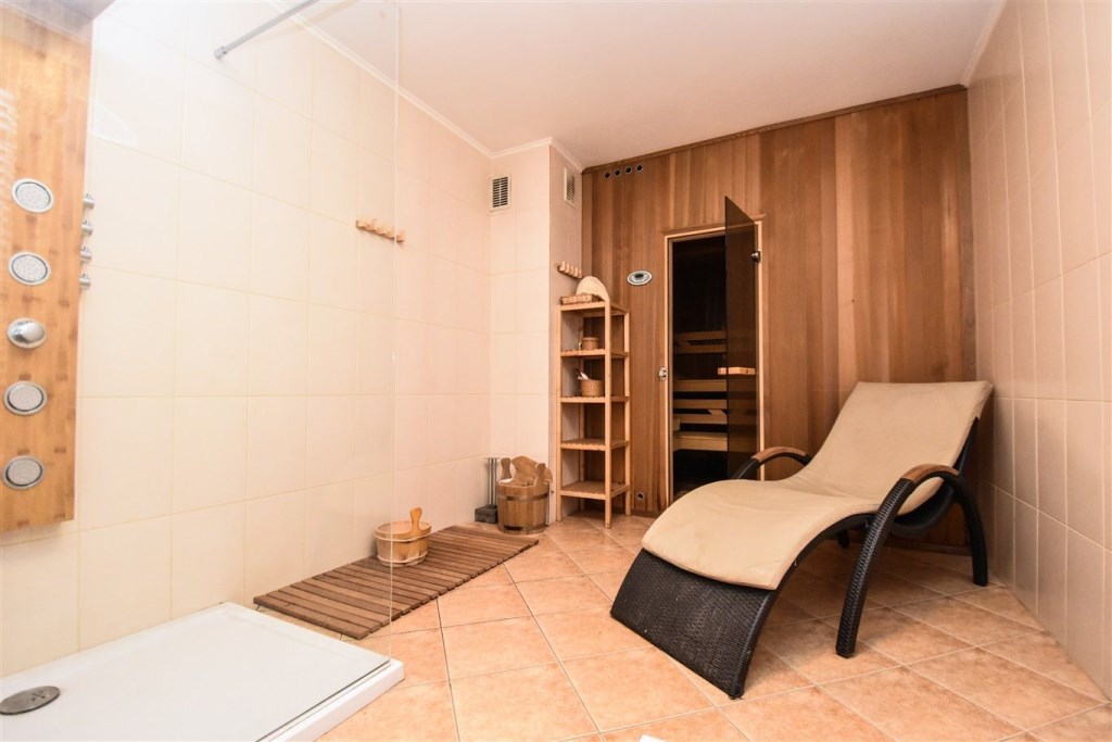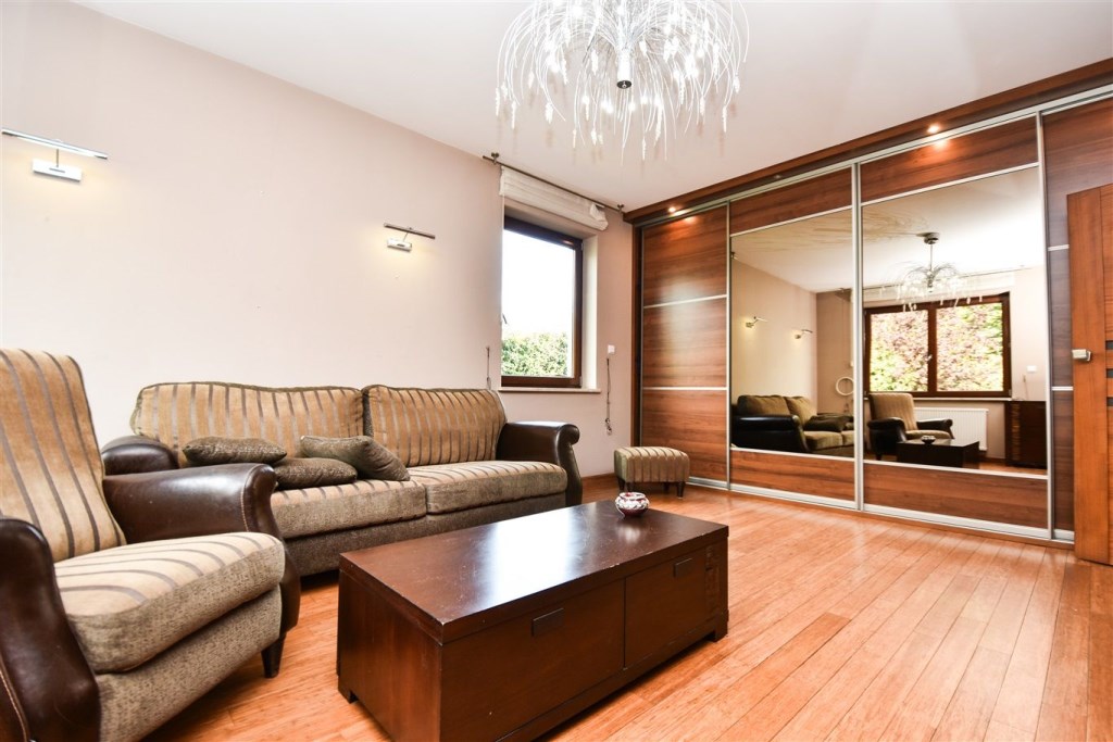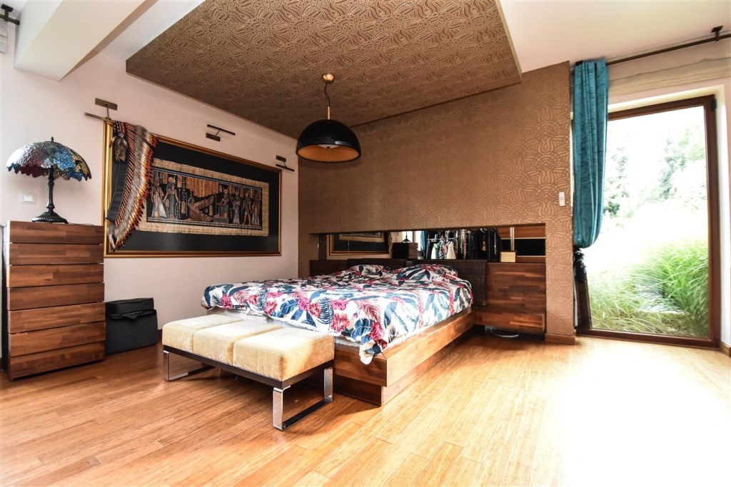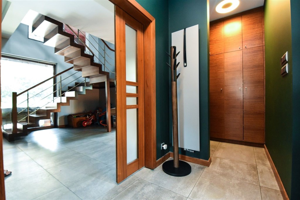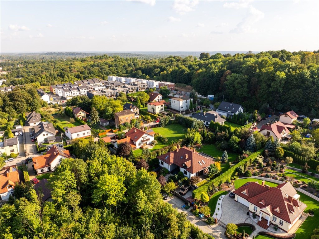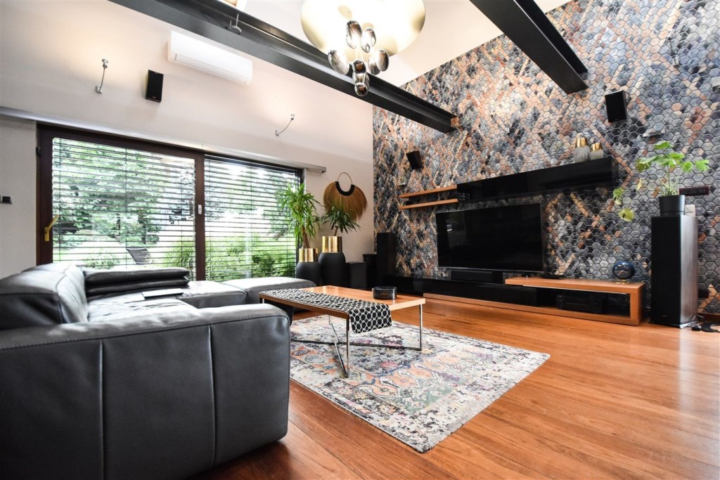 Trzykondygnacyjny, luksusowy dom o powierzchni 222,73 m² w zabudowie wolnostojącej z 2011 roku Wykończony w wysokim standardzie, z wykorzystaniem najlepszych materiałów dostępnych na rynku. Nieruchomość znajduje się na zamkniętym, luksusowym osiedlu wraz z 3 innymi domami, z udziałem w drodze dojazdowej. Na terenie posesji znajduje się basen podgrzewany pompą ciepła z zadaszeniem tarasowym sterowanym na pilota. Taras zewnętrzny jest ogrzewany z zamontowaną markizą elektryczną oraz zamykaniem z żaluzji drewnianych. Ogród urządzony w stylu japońskim z rozprowadzonym nawodnieniem i zraszaniem sterowanym przez aplikację. Podjazd oraz schody zewnętrzne są podgrzewane. W bryle budynku znajduje się jeden z garaży, drugi jest wolnostojący. Na dachu zamontowano panele fotowoltaiczne o mocy 10kWh. Dom ogrzewany jest piecem gazowym z możliwością sterowania przez aplikację. W części kuchennej rozprowadzono ogrzewanie podłogowe, w salonie nawiewy podłogowe, natomiast w pozostałej części domu zamontowano grzejniki. Budynek klimatyzowany – zamontowane są 4 jednostki klimatyzacji. W piwnicy znajdują się 2 sauny – sucha oraz parowa.
