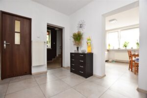 Dom dwukondygnacyjny, w całości podpiwniczony, wolnostojący, znajdujący się na działce o powierzchni 700 m². Dom w całości urządzony, z możliwością zamieszkania lub przearanżowania według własnego gustu. Dom oraz ciepła woda ogrzewane są z pieca na ekogroszek z podajnikiem. Budynek z 1982 roku z późniejszymi modernizacjami i zmianami. Przeszedł generalny remont w 2012 roku. W bryle budynku znajduje się garaż. Sutereny budynku zostały zagospodarowane – znajduje się tam kuchnia letnia oraz pokój z bezpośrednim wyjściem na ogród. Istnieje możliwość zaadaptowania poddasza.
