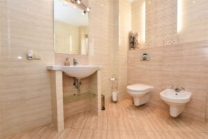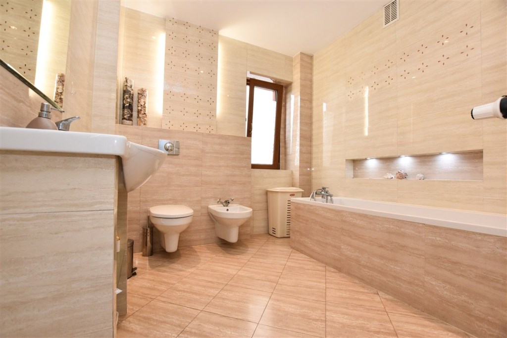 • Łazienka z wanną oraz WC