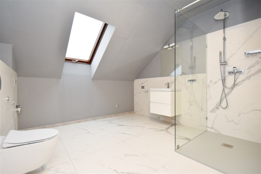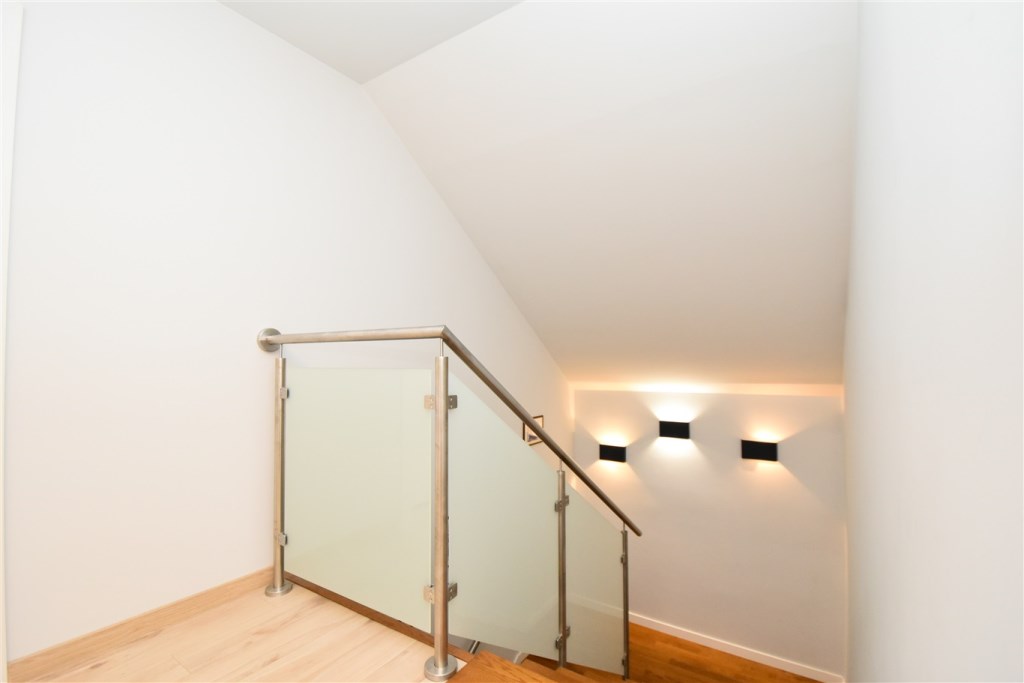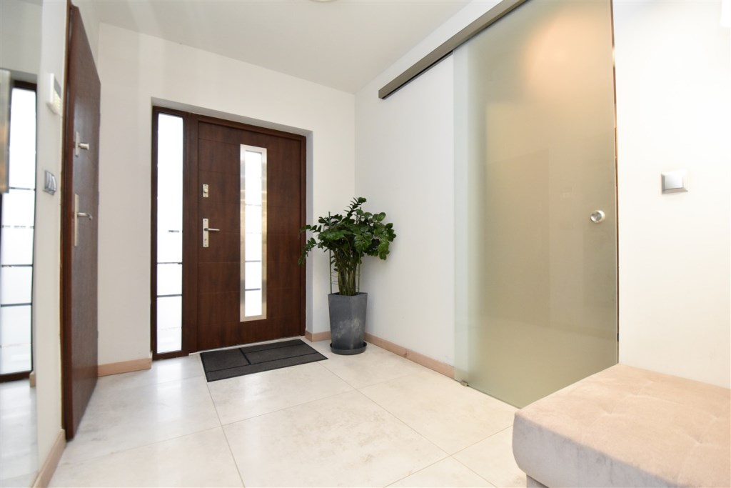 Dwukondygnacyjny, luksusowy dom o powierzchni użytkowej 219,89 m2 w zabudowie wolnostojącej. Dom budowany w 2018-2019 roku, zamieszkany od 2020 roku. Działka na której znajduje się dom ma kształt przybliżony do prostokąta. Dom jednorodzinny, mieszkalny o zwartej bryle, parterowy z poddaszem użytkowym. W bryle budynku garaż dwustanowiskowy. Wykończony w wysokim standardzie, z wykorzystaniem najlepszych materiałów dostępnych na rynku. Dom wyposażony jest w instalacje centralnego ogrzewania, wodnokanalizacyjną, elektryczną i gazową. W domu zainstalowano system rekuperacji, zapewniający mechaniczną wentylację z odzyskiem ciepła. Na dachu zamontowano panele fotowoltaiczne, które znacząco obniżają koszty energii elektrycznej.