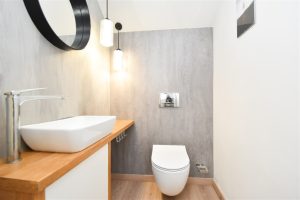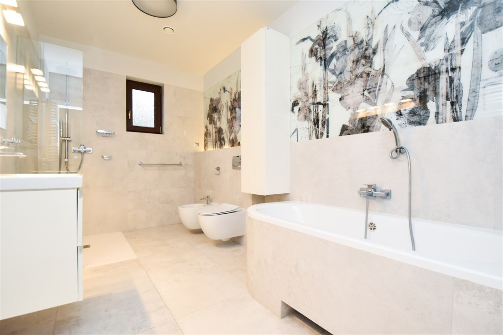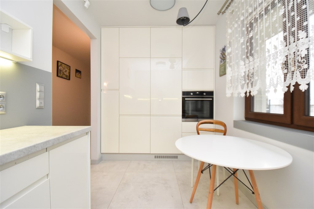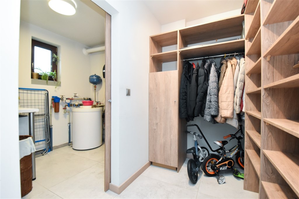 Na wyposażeniu domu znajduje się zabudowa meblowa wykonana na wymiar z wysokiej jakości materiałów oraz ogrzewanie podłogowe.