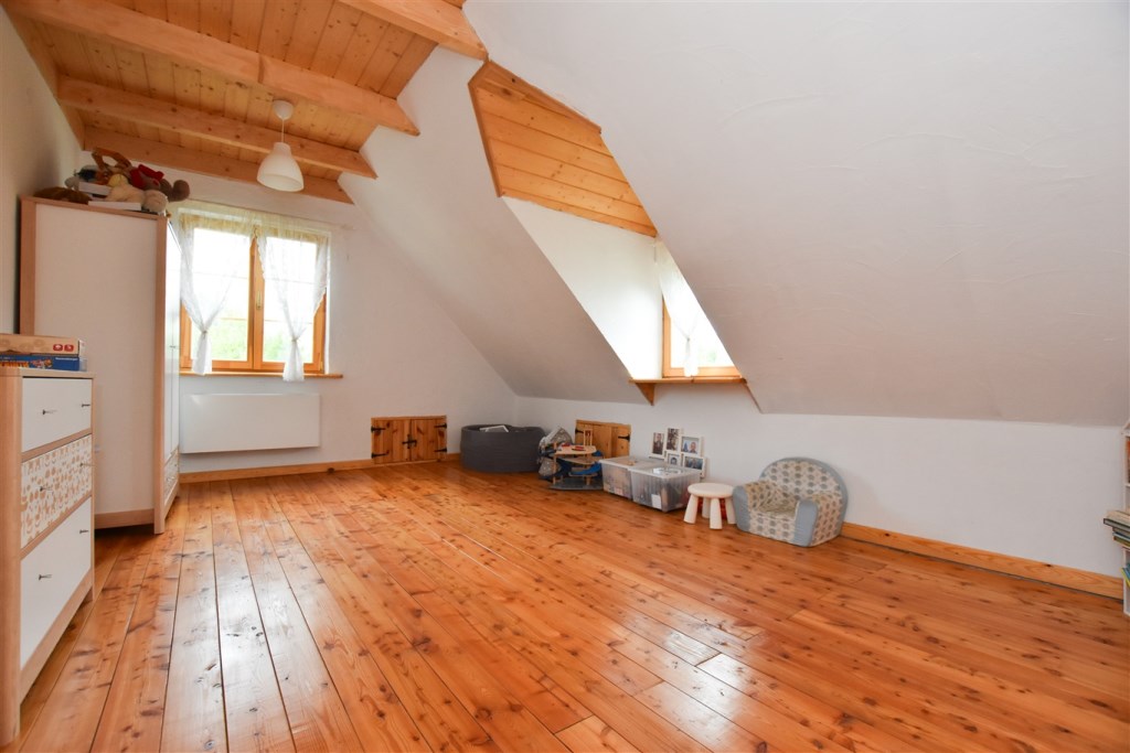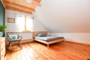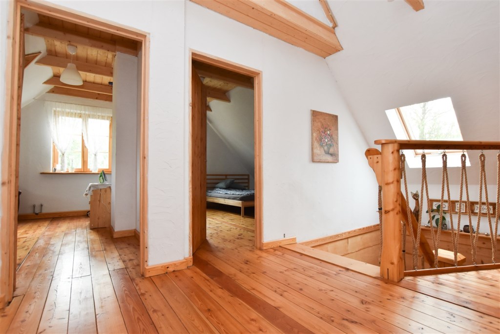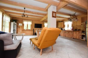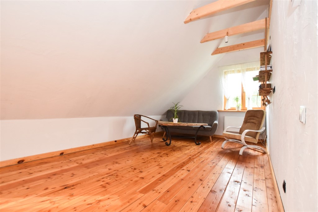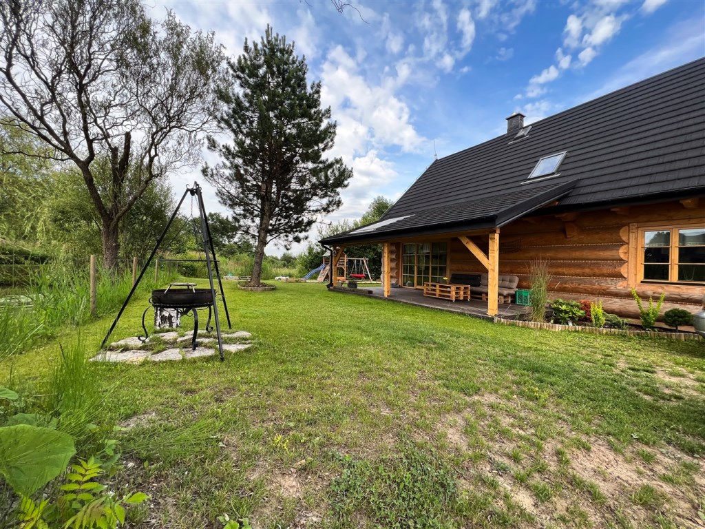 Piękny, przestronny dom wykonany z bali znajdujący się na działce o powierzchni 2500 m², na której znajduje się zarybiony staw, co czyni to miejsce wyjątkowo urokliwym. Budynek powstał w 2020 roku, a do jego wykonania użyte zostały najwyższej jakości materiały. Sprzedawany jest z całym wyposażeniem widocznym na zdjęciach. Ogrzewany z gruntowej pompy ciepła – parter w całości z ogrzewaniem podłogowym, w górnej części domu w każdym pomieszczeniu zamontowane są klimakonwektory.