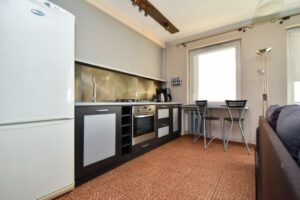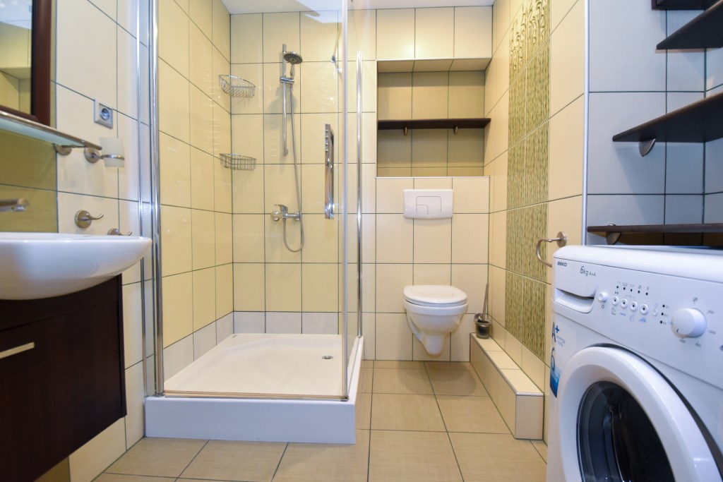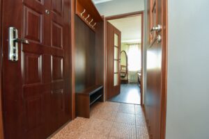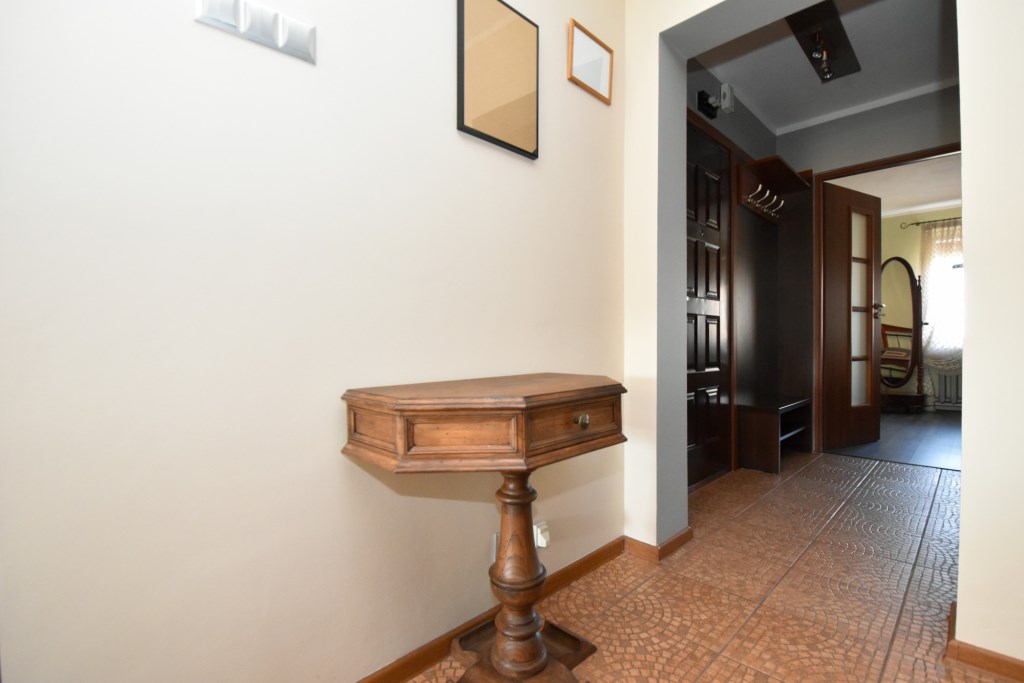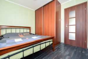 Przestronne, w pełni wyposażone dwupokojowe mieszkanie znajdujące się na trzecim piętrze w niskim bloku. Lokal ma bardzo funkcjonalny układ i składa się z salonu połączonego z aneksem kuchennym oraz wyjściem na balkon, sypialni oraz łazienki z WC. Mieszkanie wyposażone jest w pojemną garderobę, widoczną na zdjęciach. Lokal znajduje się w kameralnym bloku, gdzie na piętrze są tylko dwa mieszkania. Ogrzewanie i ciepła woda z sieci miejskiej, bez podzielników. Dla najemców dostępna suszarnia oraz wózkownia.
