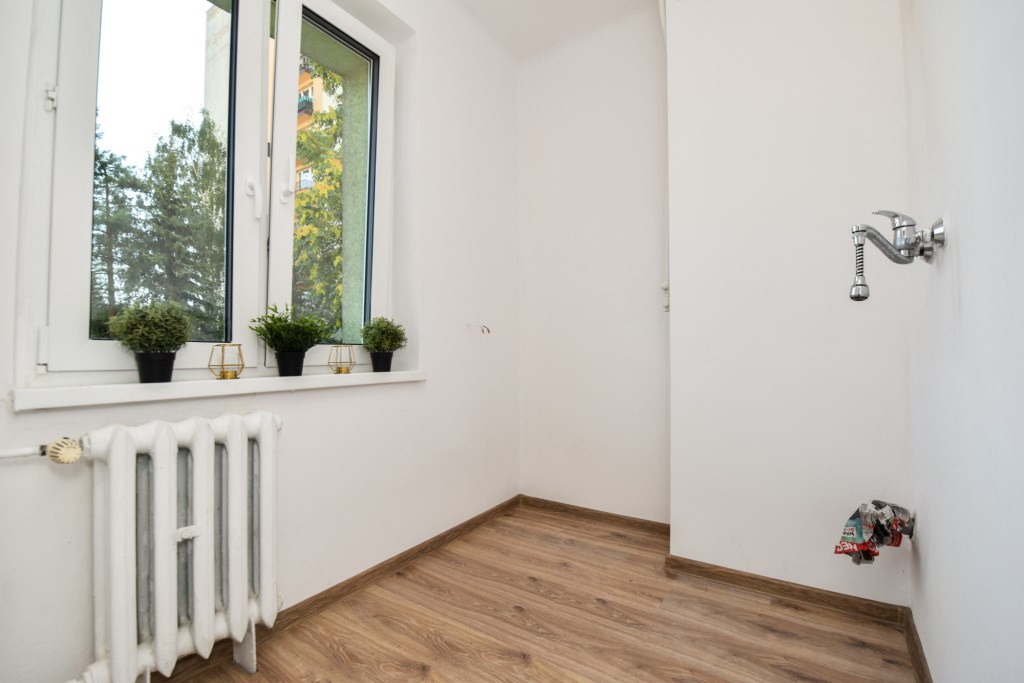 Jasna i przytulna kawalerka położona na pierwszym piętrze w wysokim bloku. Klatka schodowa zadbana, blok po termomodernizacji. Dużo miejsc parkingowych przed blokiem. Mieszkanie po generalnym remoncie, podczas którego miedzy innymi zostały wymienione piony wodno- kanalizacyjne, instalacja elektryczna, okna oraz cała łazienka. Dodatkowym atutem jest niski czynsz- 380 zł. Wolne od zaraz!