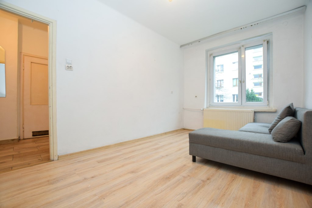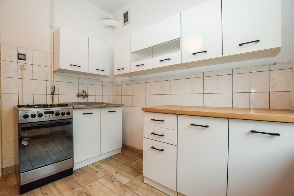 Duża kawalerka położona na parterze w niskim, 3-piętrowym bloku po termomodernizacji. Czysta, zadbana klatka schodowa zamykana domofonem. Mieszkanie do generalnego remont i urządzenia według własnego gustu. W lokalu ogrzewane z sieci miejskiej, ciepła woda z piecyka gazowego. Idealne pod wynajem! Wolne od zaraz.