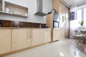 • Kuchnia wykonana na wymiar połączona z pokojem dziennym