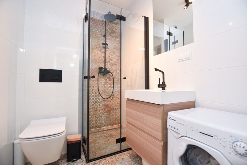 Kawalerka położona na czwartym piętrze w pięciopiętrowym apartamentowcu z 2021 roku.  Czysta, zadbana klatka schodowa, zielona okolica. Do wprowadzenia. Kameralne osiedle, zamknięte, zabezpieczone bramą wjazdową i domofonem. Mieszkanie sprzedawane z pełnym wyposażeniem widocznym na zdjęciu. Brama wjazdowa z systemem sczytywania rejestracji samochodowych
