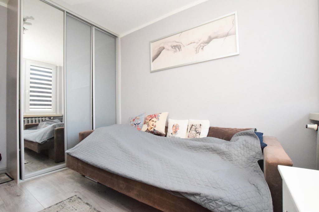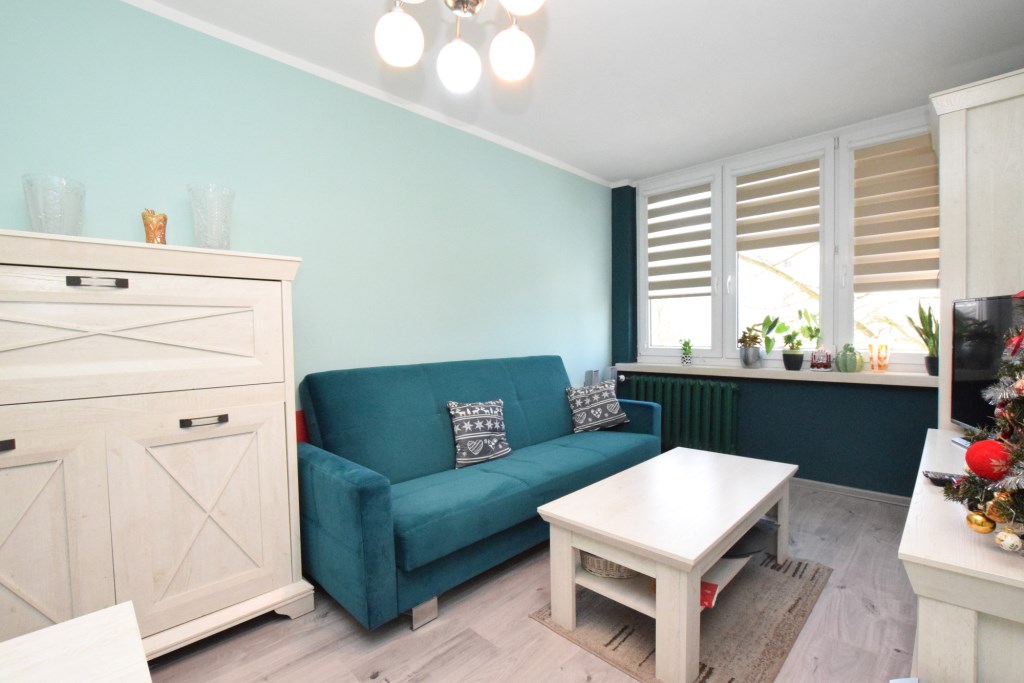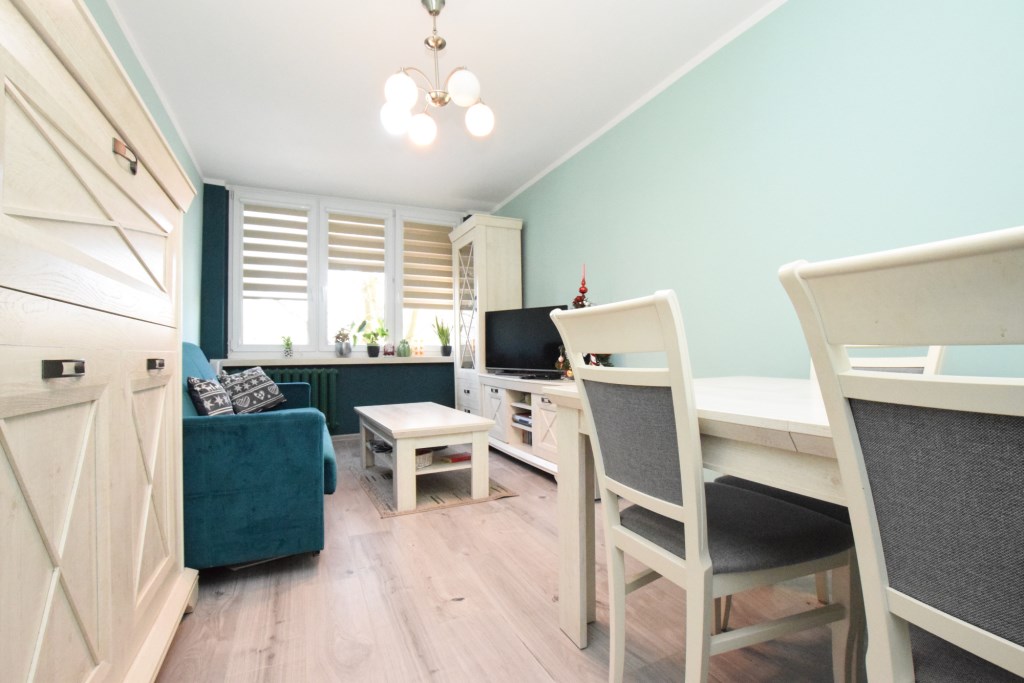 Jasne dwupokojowe mieszkanie, usytuowane na drugim piętrze w niskim bloku po termomodernizacji z zadbaną klatką schodową. W mieszkaniu kilka lat temu przeprowadzono generalny remont podczas którego wymieniona została instalacja elektryczna, okna, wymieniono podłogi oraz zrobiono gładzie. W mieszkaniu  wymienione są również piony WOD-KAN. Ogrzewanie z sieci miejskiej, a ciepła woda z piecyka gazowego typu Junkers. Mieszkanie częściowo wyposażone – do ustalenia.  Do mieszkania przynależy piwnica.