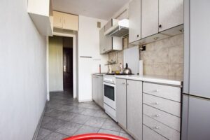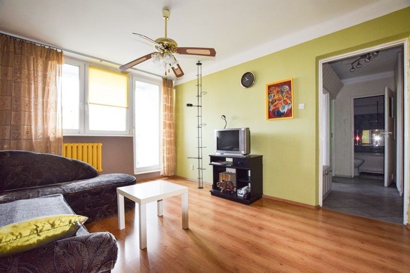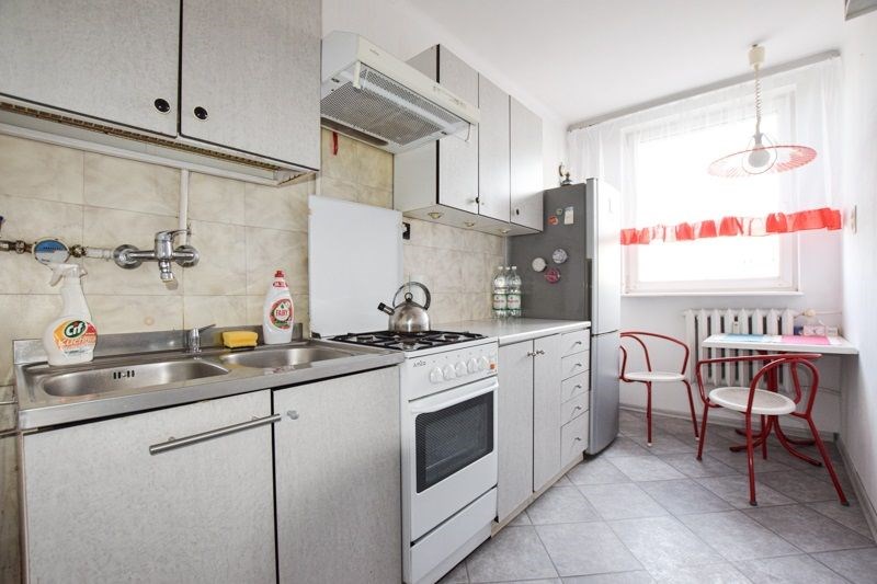 Dwupokojowe mieszkanie położone na piątym piętrze w dziesięciopiętrowym budynku. Czysta, zadbana klatka schodowa, blok po termomodernizacji. Mieszkanie do odświeżenia, częściowo wyposażone. Duża ilość miejsca parkingowego przed budynkiem. W mieszkaniu zostały wymienione piony wodnokanalizacyjne.