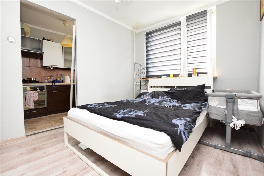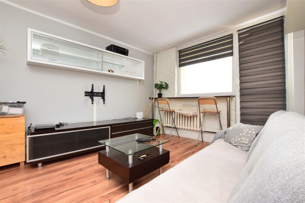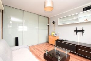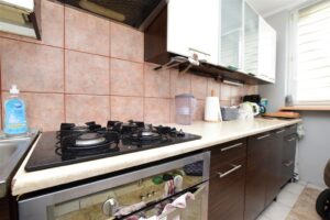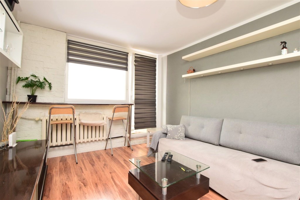 Dwupokojowe mieszkanie położone na dziewiątym piętrze w dziesięciopiętrowym budynku. Czysta, zadbana klatka schodowa, blok po termomodernizacji. Mieszkanie do wprowadzenia lub ewentualnego odświeżenia, częściowo wyposażone. Duża ilość miejsca parkingowego przed budynkiem.
