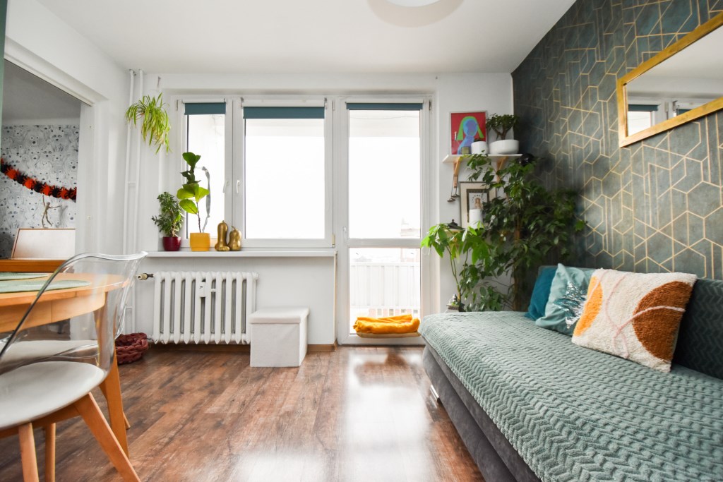 Trzypokojowe mieszkanie położone na dziewiątym piętrze w wysokim bloku z windą. Czysta, zadbana klatka schodowa. W mieszkaniu zostały wymienione piony wodno-kanalizacyjne oraz częściowo wymieniona została instalacja elektryczna. Łazienka do urządzenia według własnego gustu. Mieszkanie gotowe do wprowadzenia, wyposażone w garderobę. Widok z okien na Pałac Kultury.