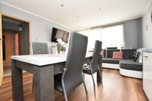Przestronne, dwupokojowe mieszkanie, położone na 8 piętrze w 10 piętrowym bloku. Mieszkanie do wprowadzenia, częściowo umeblowane.Czysta klatka schodowa, blok świeżo po termomodernizacji. Mieszkanie częściowo umeblowane, z szafą w zabudowie oraz umeblowaniem kuchni ze sprzętem AGD. Oferta skierowana do klientów gotówkowych.
