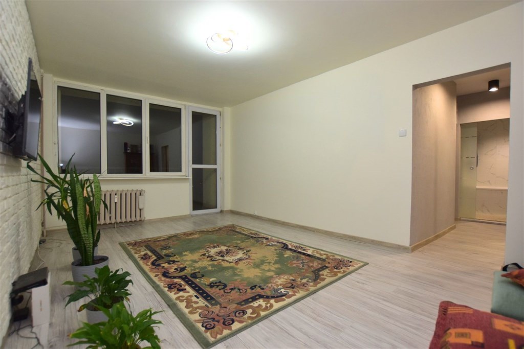 Dwupokojowe mieszkanie położone na osmym piętrze w bloku po termomodernizacji. Czysta, zadbana klatka schodowa. Mieszkanie po generalnym remoncie, wymienione wszystkie instalacje. Jedynym pomieszczeniem które wymaga zaadaptowania jest kuchnia. Dodatkowe drzwi na korytarzu. Duża ilość miejsca parkingowego przed budynkiem z przodu i z tyłu.