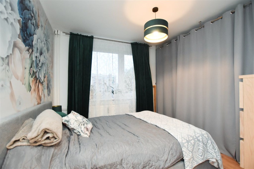 Przestronne, dwupokojowe mieszkanie po generalnym remoncie przeprowadzonym w 2021 roku, podczas którego zostały wymienione wszystkie instalacje, wykonano gładzie oraz podwieszane sufity. Mieszkanie znajduje się na wysokim parterze w niskim, czteropiętrowym bloku. Czysta, zadbana klatka schodowa. Mieszkanie dwustronne, słoneczne. Mieszkanie częściowo wyposażone i gotowe do zamieszkania. Kuchnia zabudowana meblami wraz ze sprzętami AGD (lodówka, piec z piekarnikiem oraz zmywarka).Duża ilość miejsca parkingowego przed budynkiem.