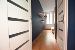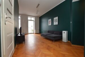 Jasne, trzypokojowe mieszkanie położone na ostatnim piętrze w dwupiętrowej kamienicy. Kamienica po termomodernizacji. Mieszkanie posiada dodatkowe pomieszczenie – garderobę. Kuchnia wyposażona w sprzęty AGD – lodówka, piekarnik z płytą grzewczą, mikrofala oraz okap.