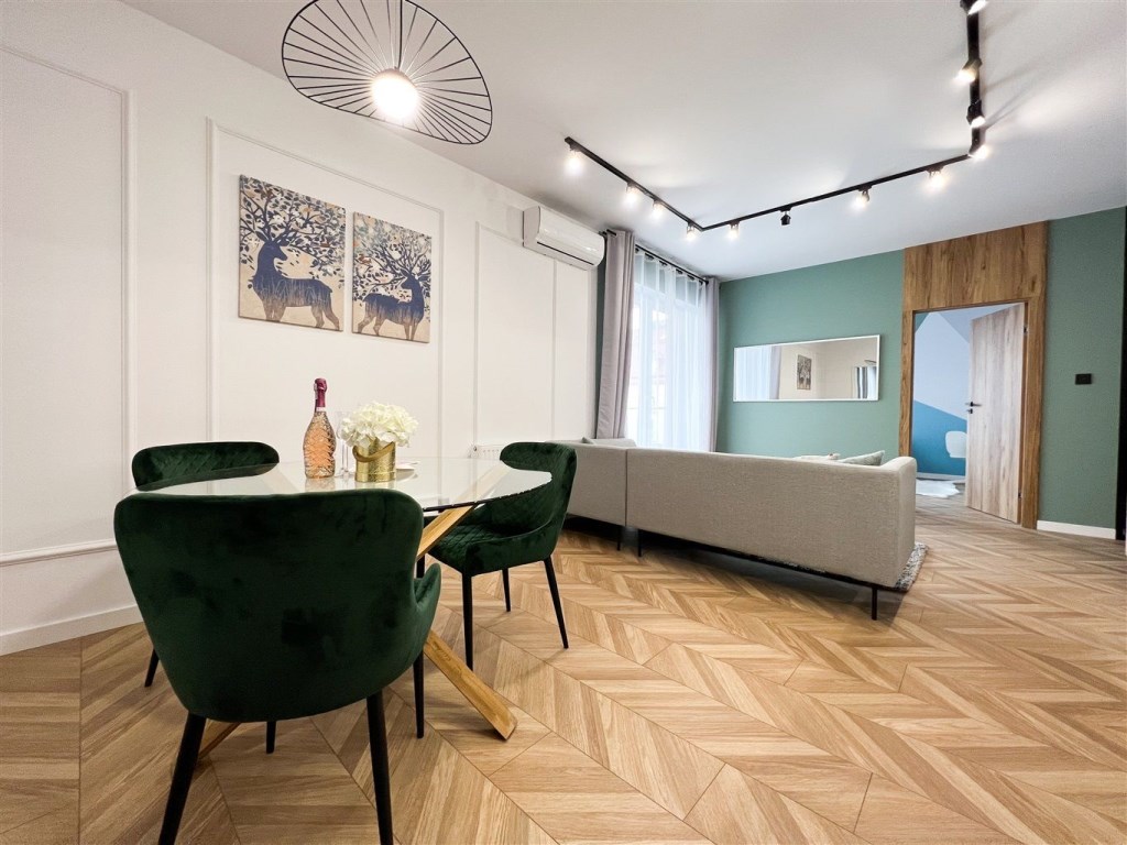 • Salon połączony z kuchnią i wyjściem na balkon
