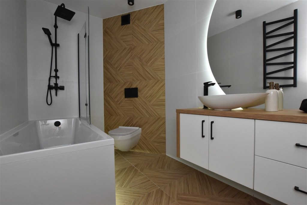 • Łazienka z wanną z funkcją prysznica i WC