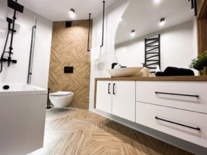 • Na podłodze panele oraz gres wysokiej jakości