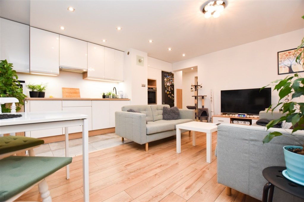 • Przestronny salon połączony z kuchnią oraz wyjściem na balkon