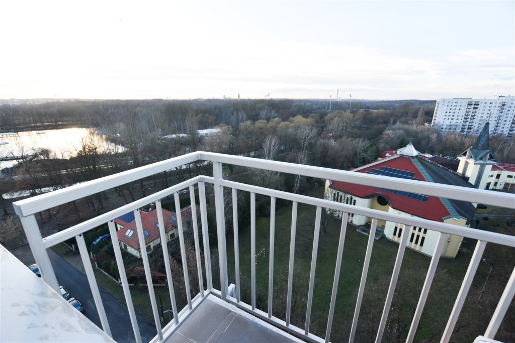Trzypokojowe mieszkanie położone na dziesiątym piętrze w dziesięciopiętrowym budynku. Czysta, zadbana klatka schodowa. Mieszkanie do wprowadzenia lub ewentualnego odświeżenia. Mieszkanie częściowo wyposażone, meble widoczne na zdjęciach mogą pozostać w mieszkaniu. W dużym pokoju zamontowana jest klimatyzacja. Blok świeżo po termomodernizacji. Duża ilość miejsca parkingowego przed budynkiem. Mieszkanie z pięknym widokiem na popularne Stawiki.