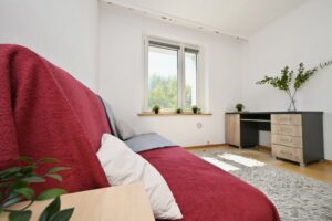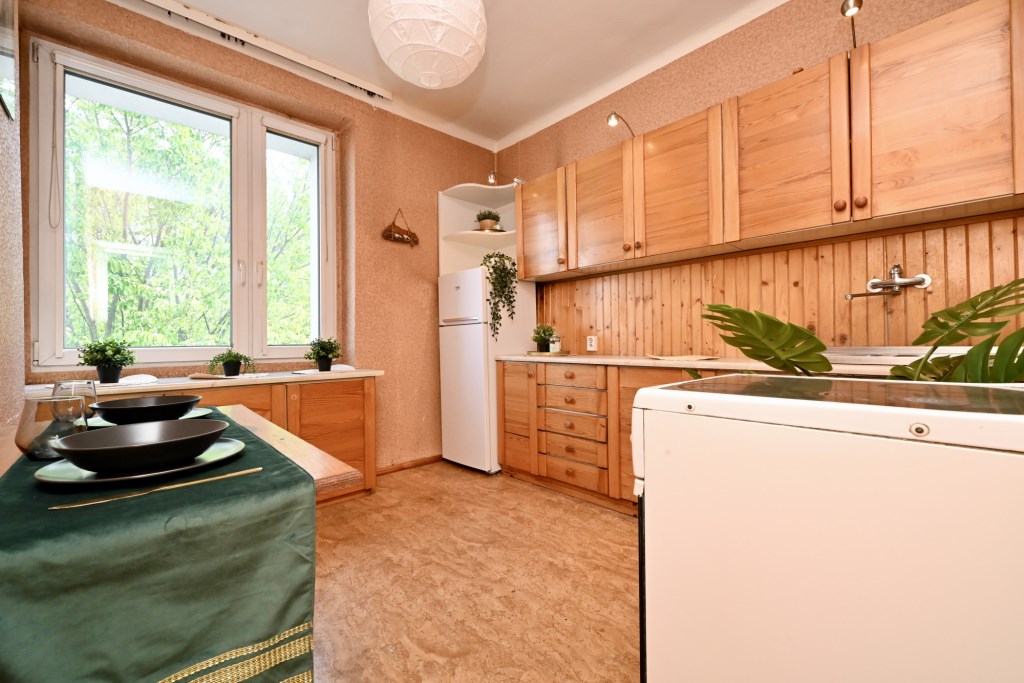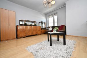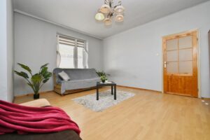 Przestronne, trzypokojowe mieszkanie usytuowane na trzecim piętrze niskiego, czteropiętrowego bloku. Niewysoki czynsz sprawia, że mieszkanie jest korzystne również pod względem kosztów eksploatacyjnych. Obecnie ogrzewanie elektryczne, z możliwością łatwego przejścia na system gazowy. Budynek po termomodernizacji, z czystą i zadbaną klatką schodową. Wokół dużo zieleni i przestrzeni do wypoczynku, a także liczne ogólnodostępne miejsca parkingowe przed budynkiem.
