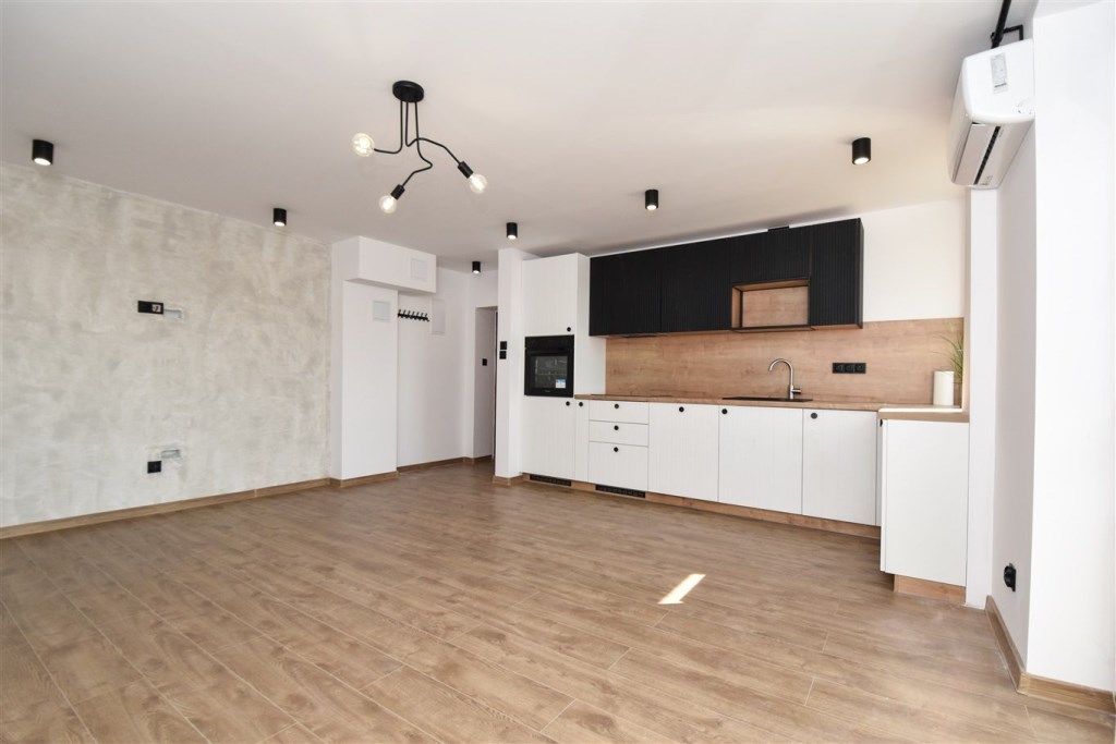 • Salon z aneksem kuchennym i wyjściem na balkon